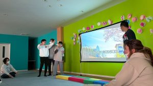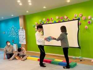 みんなで作った飾りを壁に貼り、