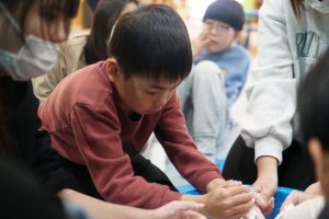 みんな興味深々で周りに集まって