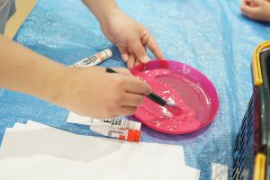 みんなで作った手型をペタペタ貼り付けると♪♬