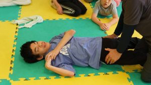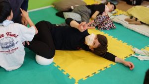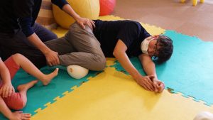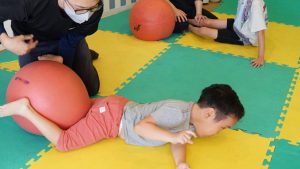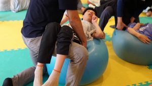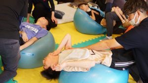 最後は両足にボールを挟んで転がってみんなでリレーをしました💥