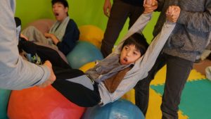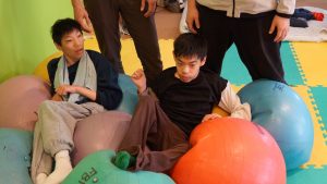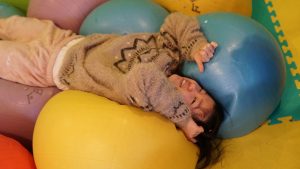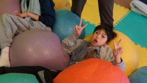 少し怖がっていた子も柔らかいボールの感触に思わずニッコリ😍