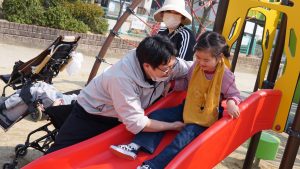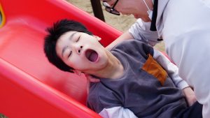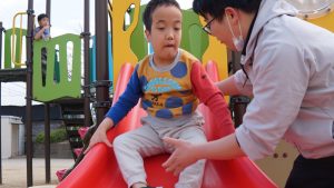 滑り台に…