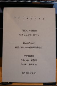 男性用トイレ壁面にメッセージと2点の作品を展示