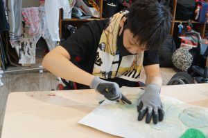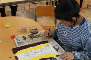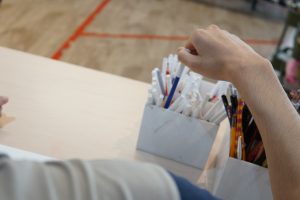 それぞれ役割分担を朝礼の時に決めて道具や画材の