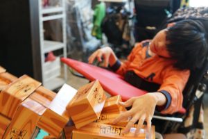 材質は厚紙の安全な物を使用しており車椅子の方や