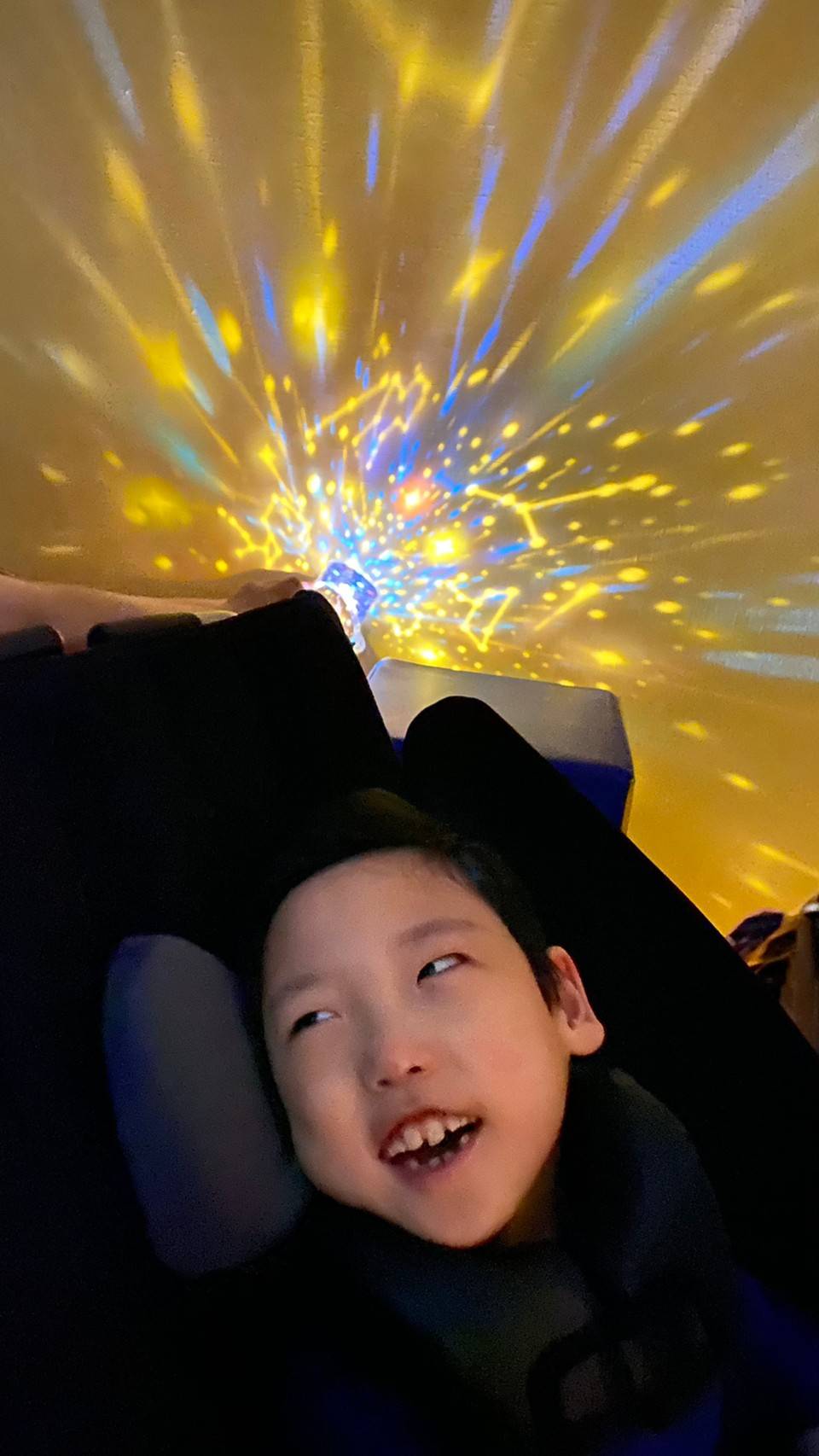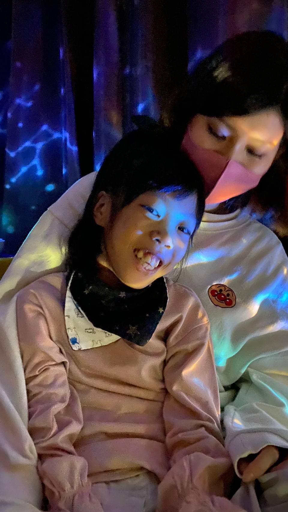 色んな光が動いてとてもキレイで、こどもたちもジーッと眺めていたり、キョロキョロしたり、ニッコリ笑顔もたくさん見せてくれました♪