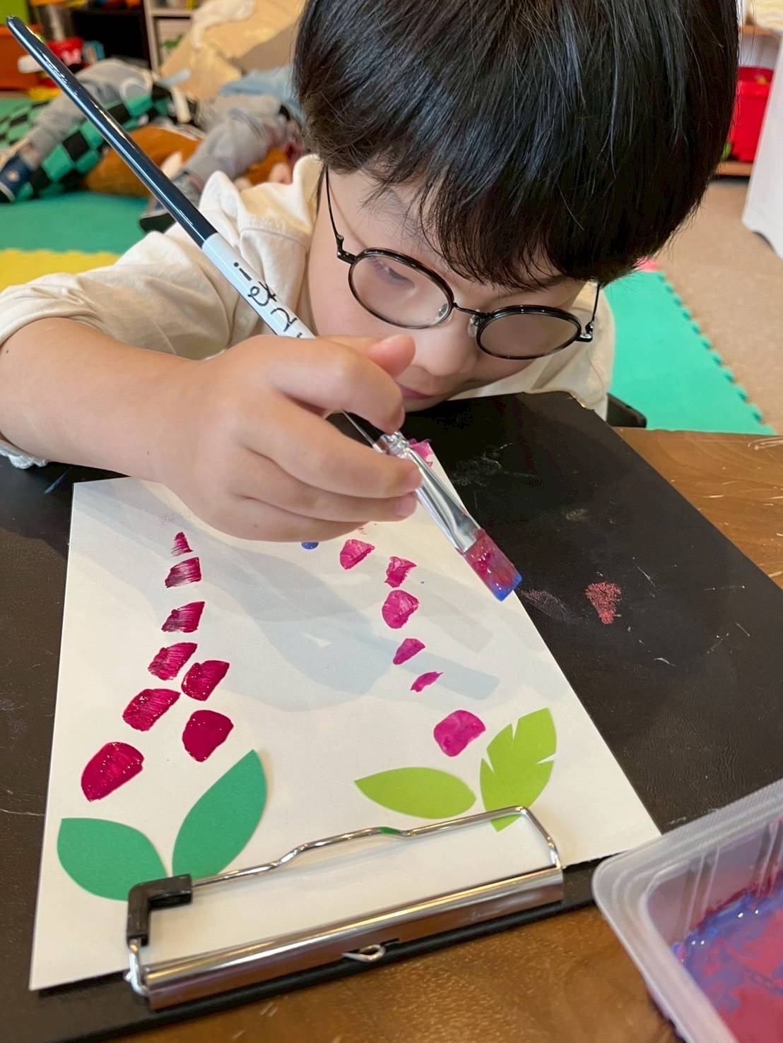 筆で描く子 指で描く子 個性的な藤が咲きほこりました! 皆さん 拡大してじっくり見てみてくださいね。 本当に上手に描いています‼️