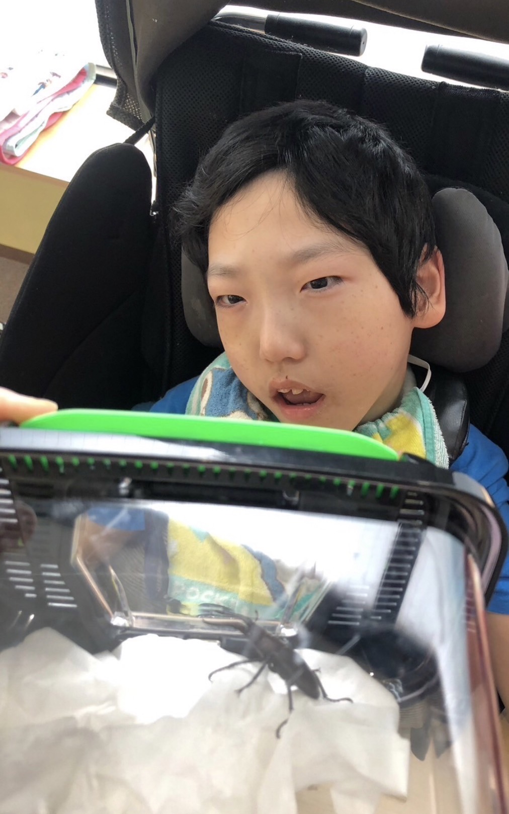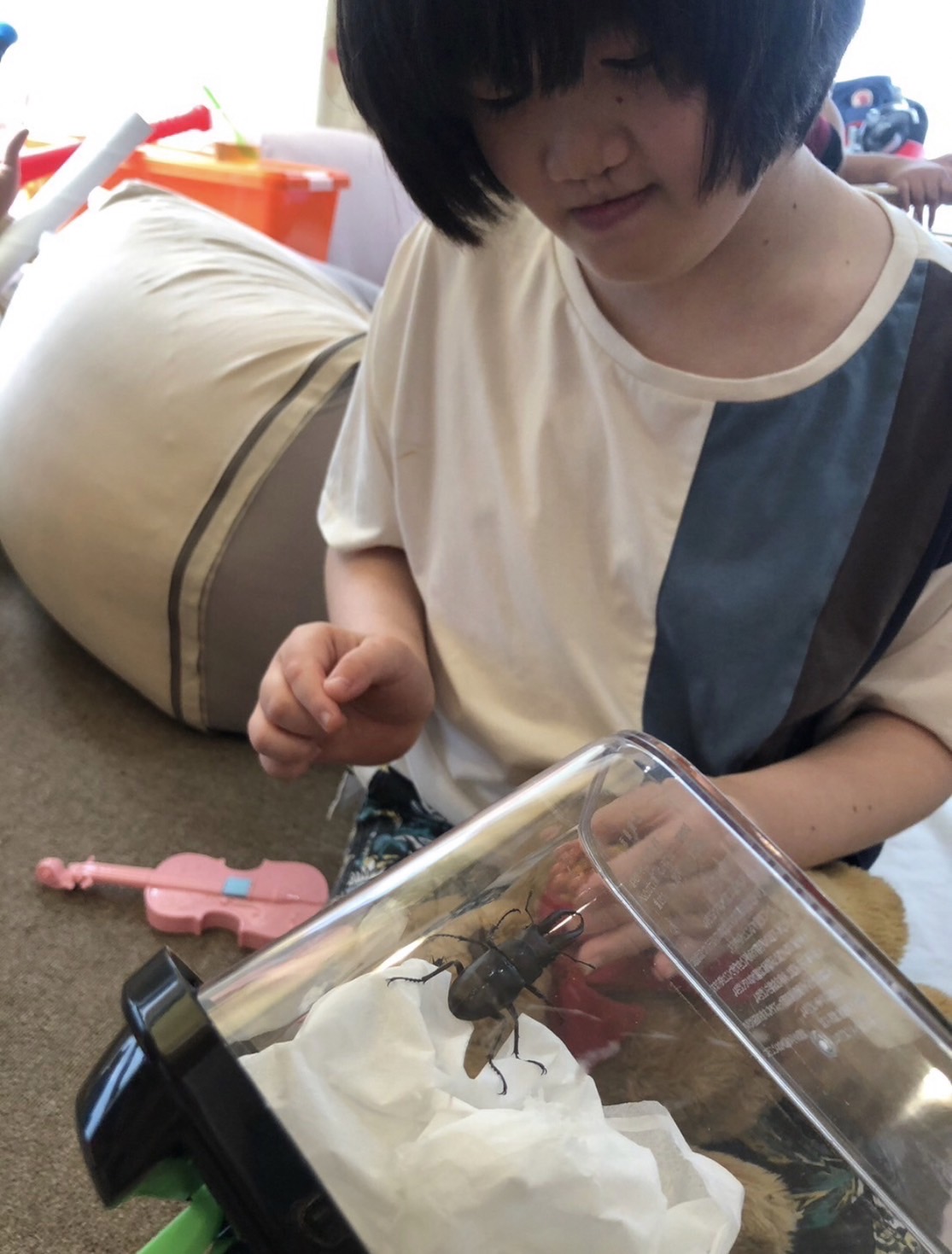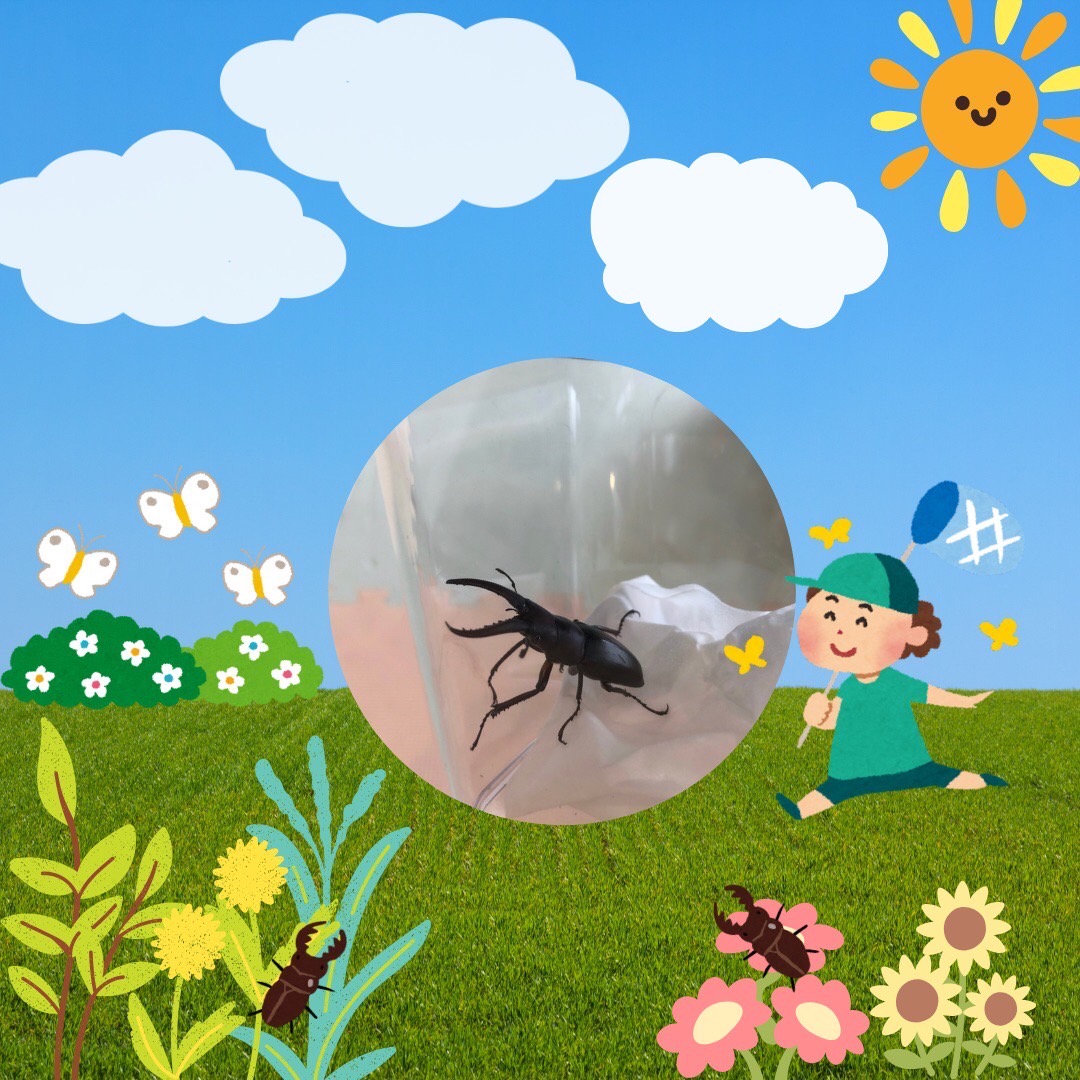 「見てみて〜クワガタムシがいるよ〜!」