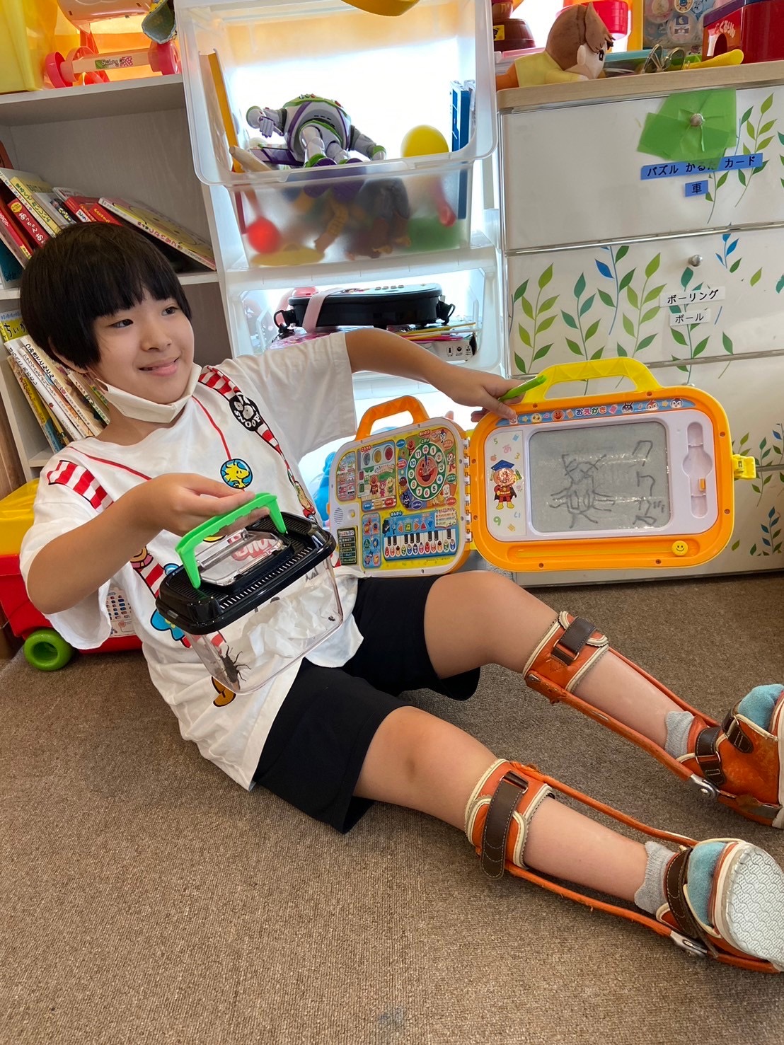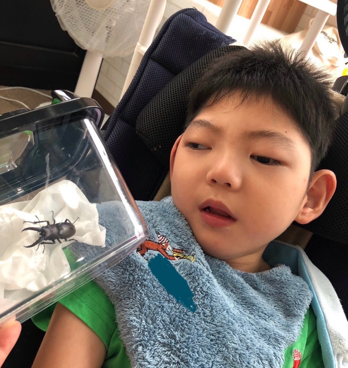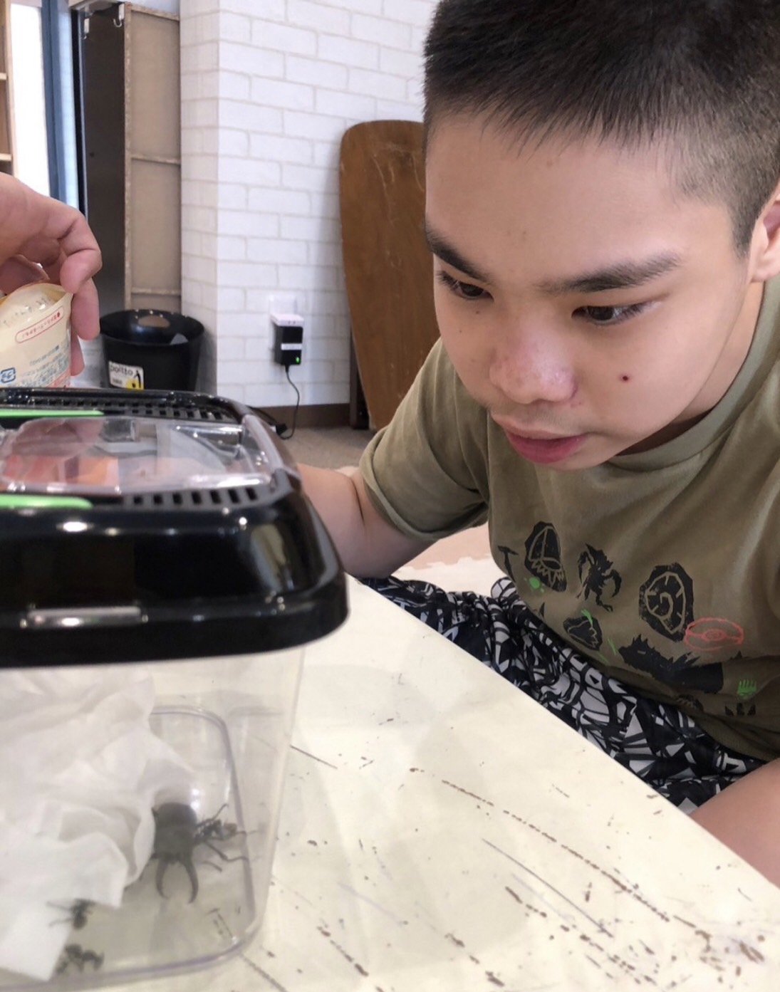 「見てみて〜クワガタムシがいるよ〜!」