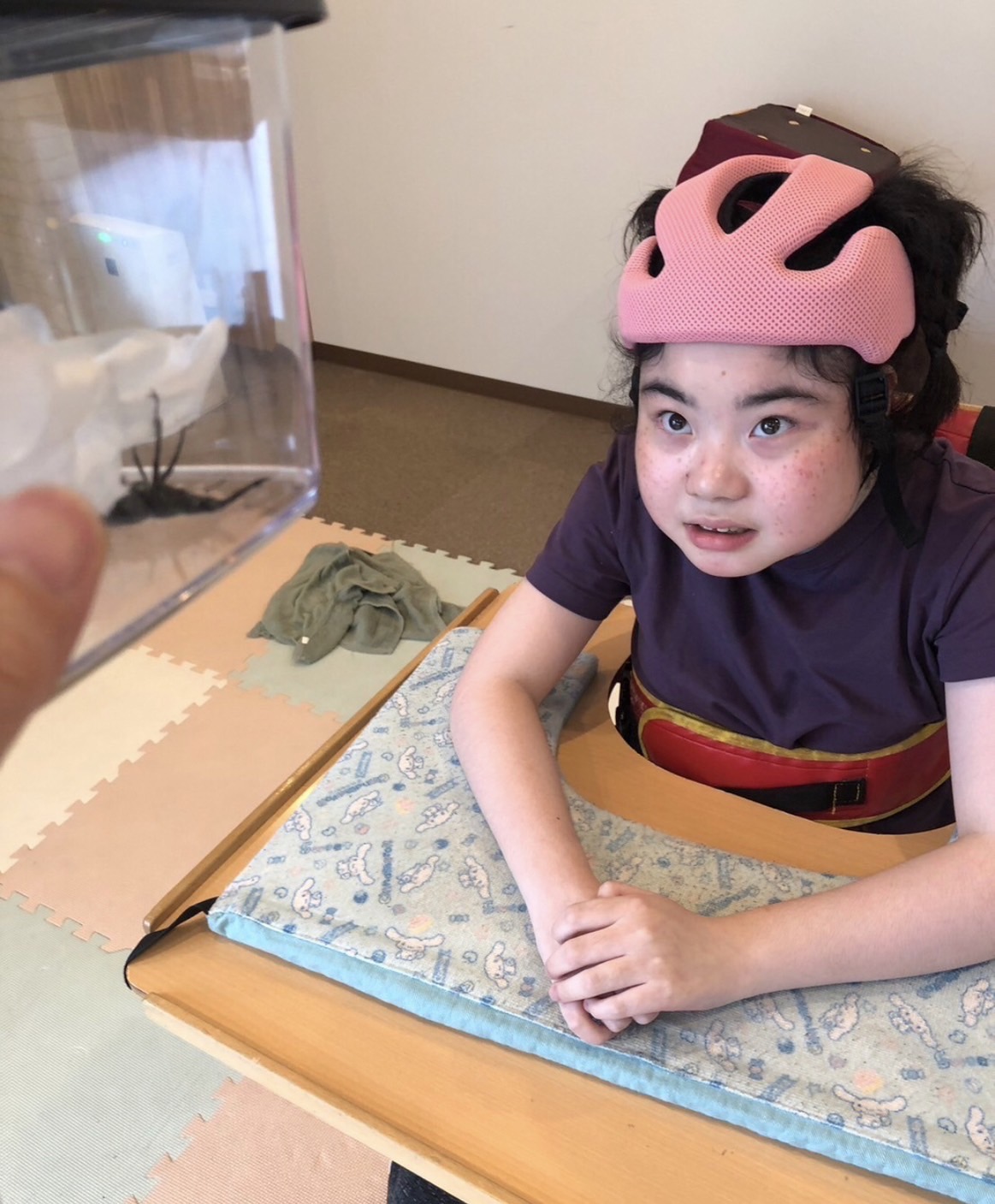 「まだ小さいね。あ、ひっくり返っちゃった!」