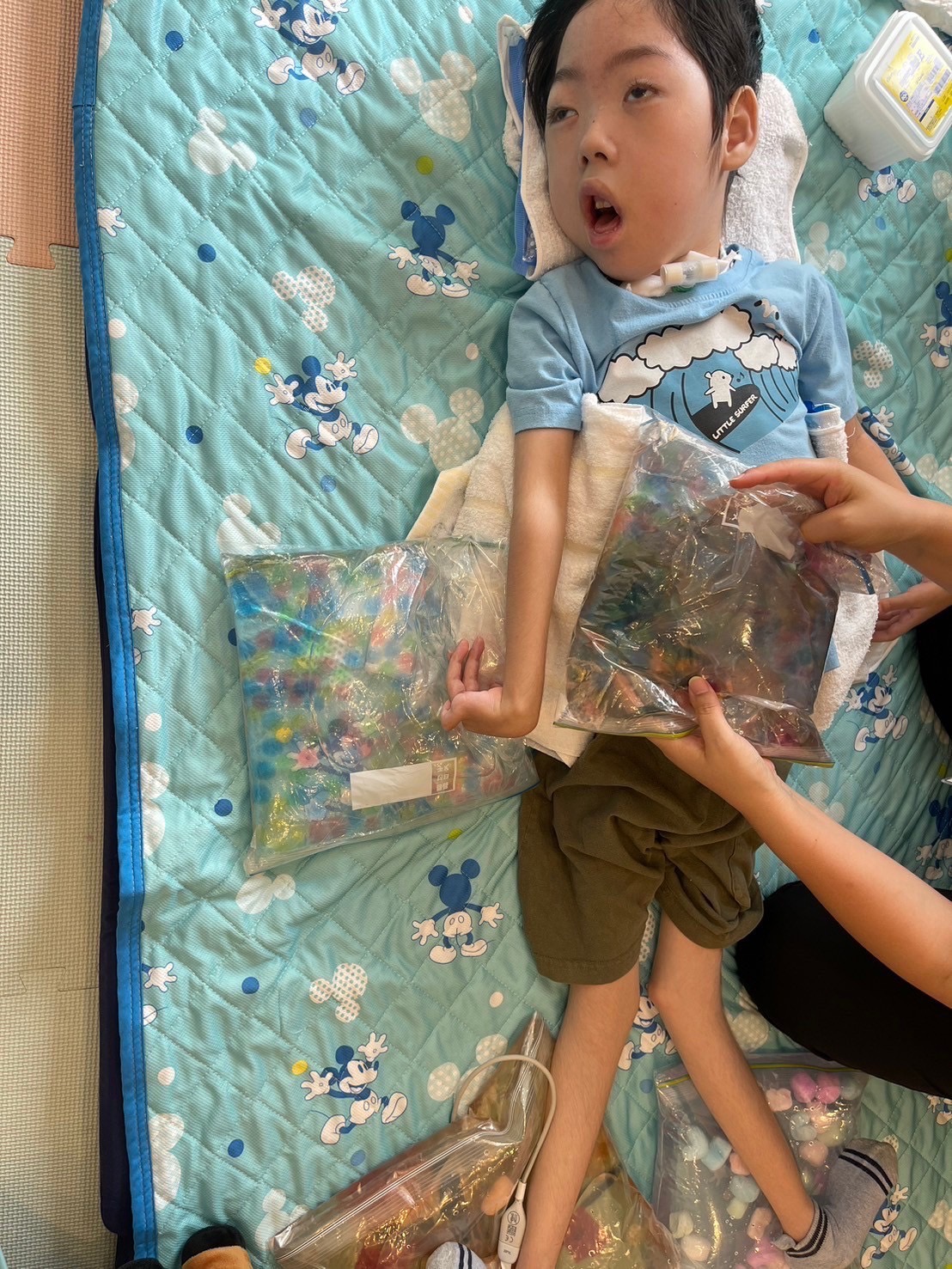 ウォーターマットで冷たさを感じたり