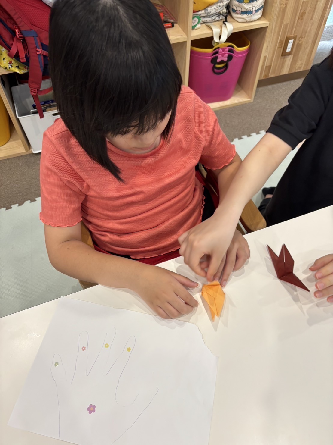 お友達とスタッフと一緒に千羽鶴を折ってみたり🎵