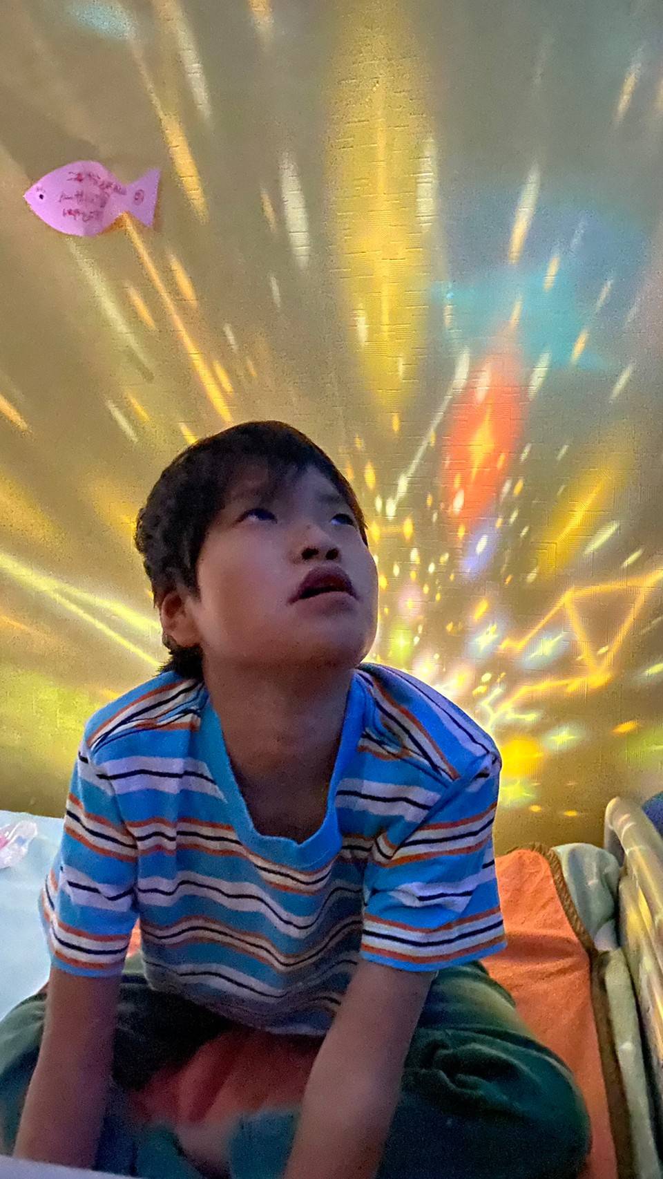 色んな光が動いてとてもキレイで、こどもたちもジーッと眺めていたり、キョロキョロしたり、ニッコリ笑顔もたくさん見せてくれました♪