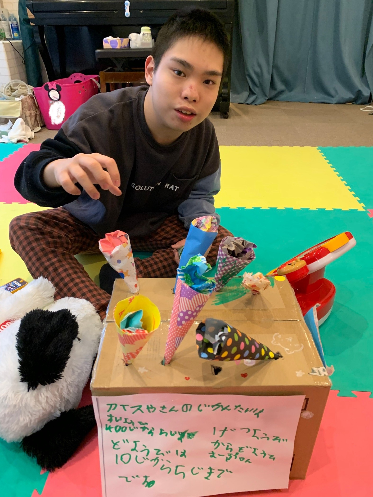 たこ焼き屋さん、アイス屋さんを開いてくれたり、