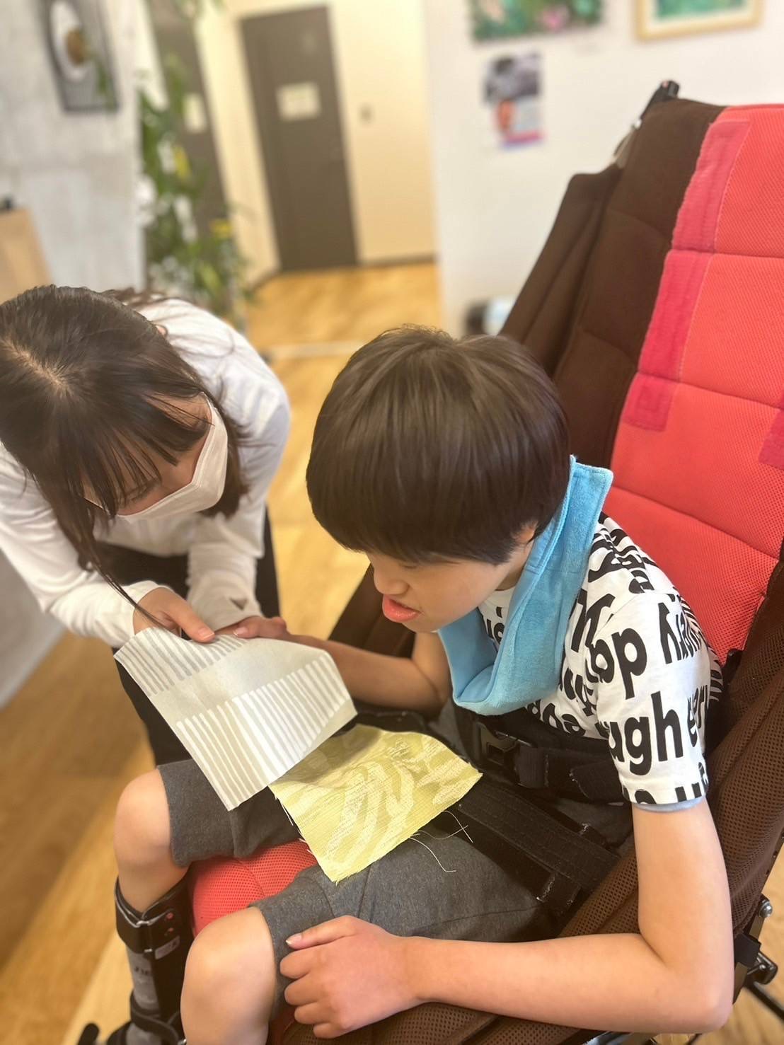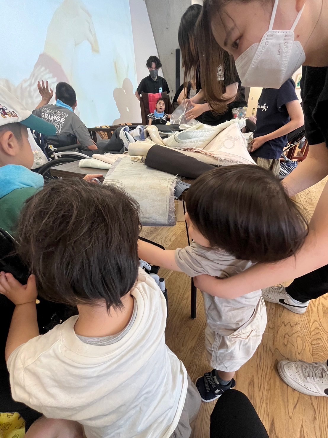 たくさんの布の中から、思い思いの布を選びました😊