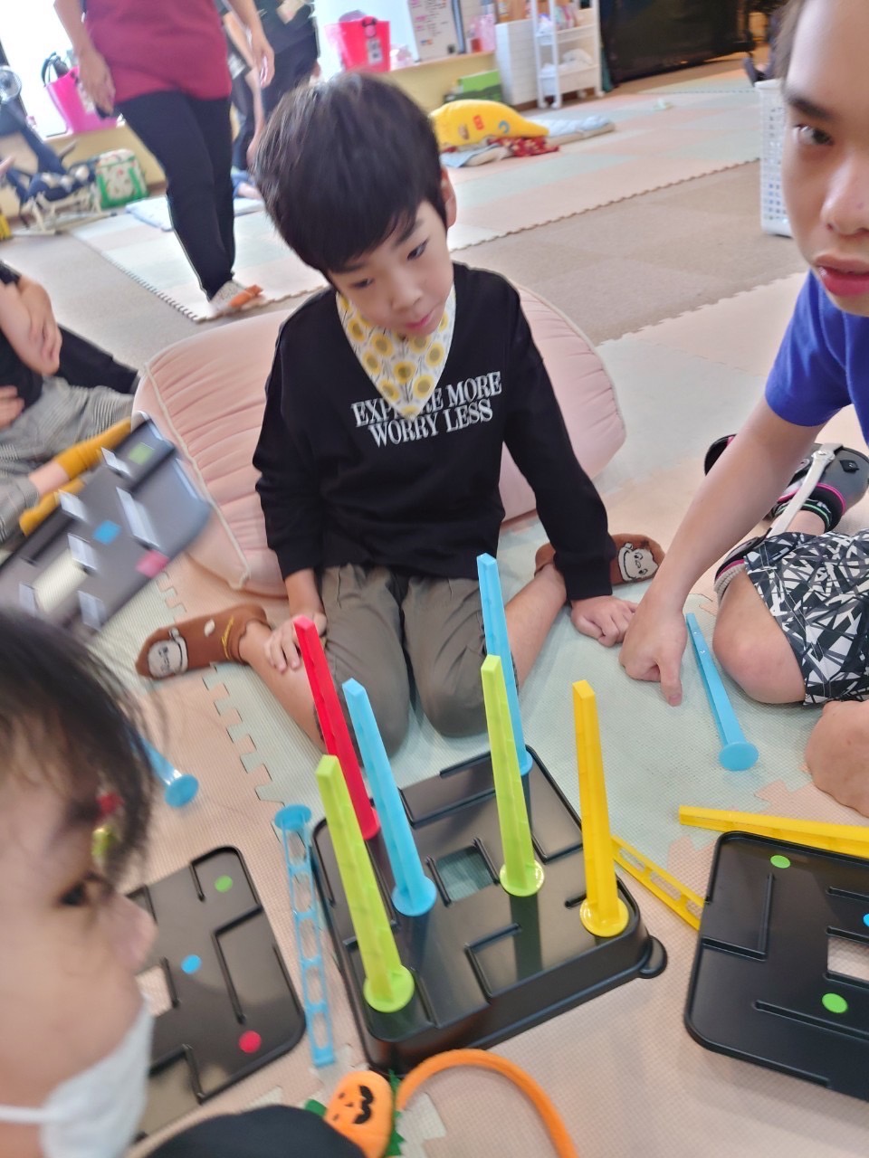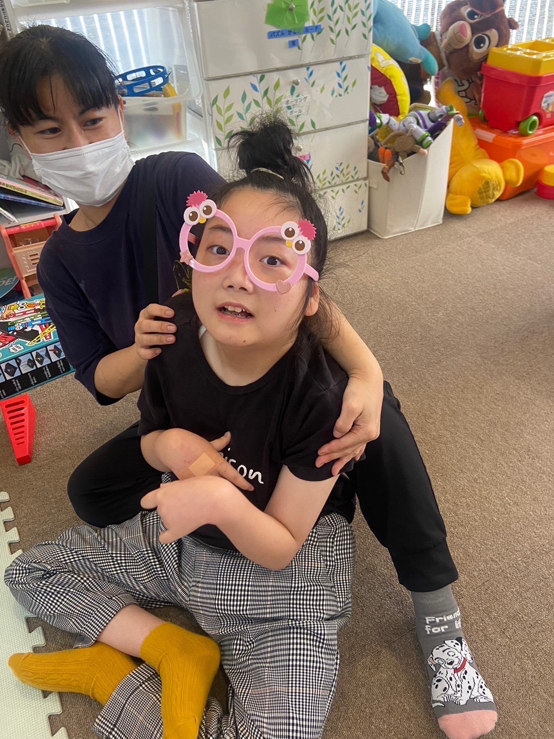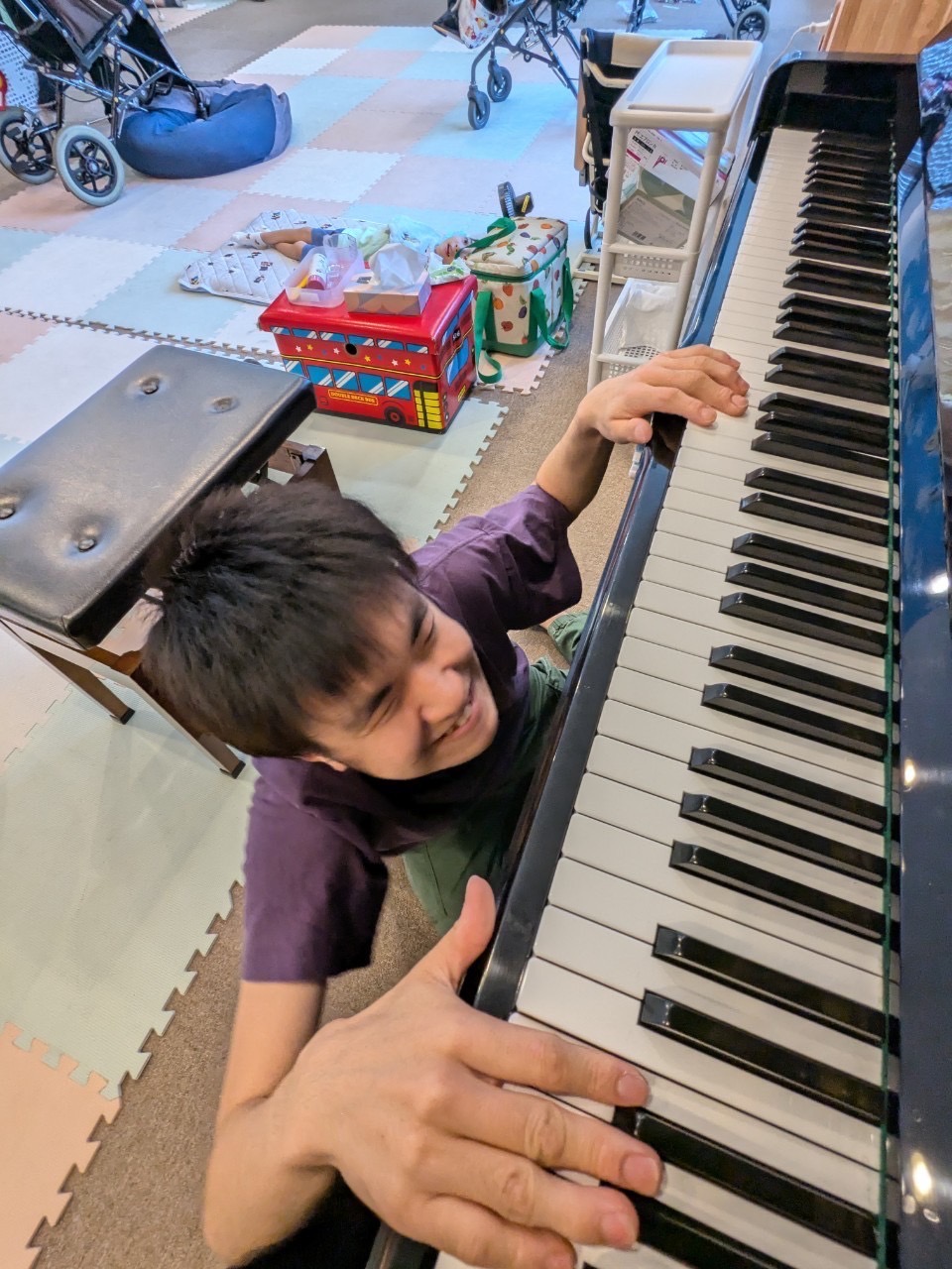 体温を測ったり、お茶を飲んだりした後に、自由に過ごします!ピアノを弾いて過ごすお友達もいれば、メガネをかけてオシャレに過ごすお友達もいます✨