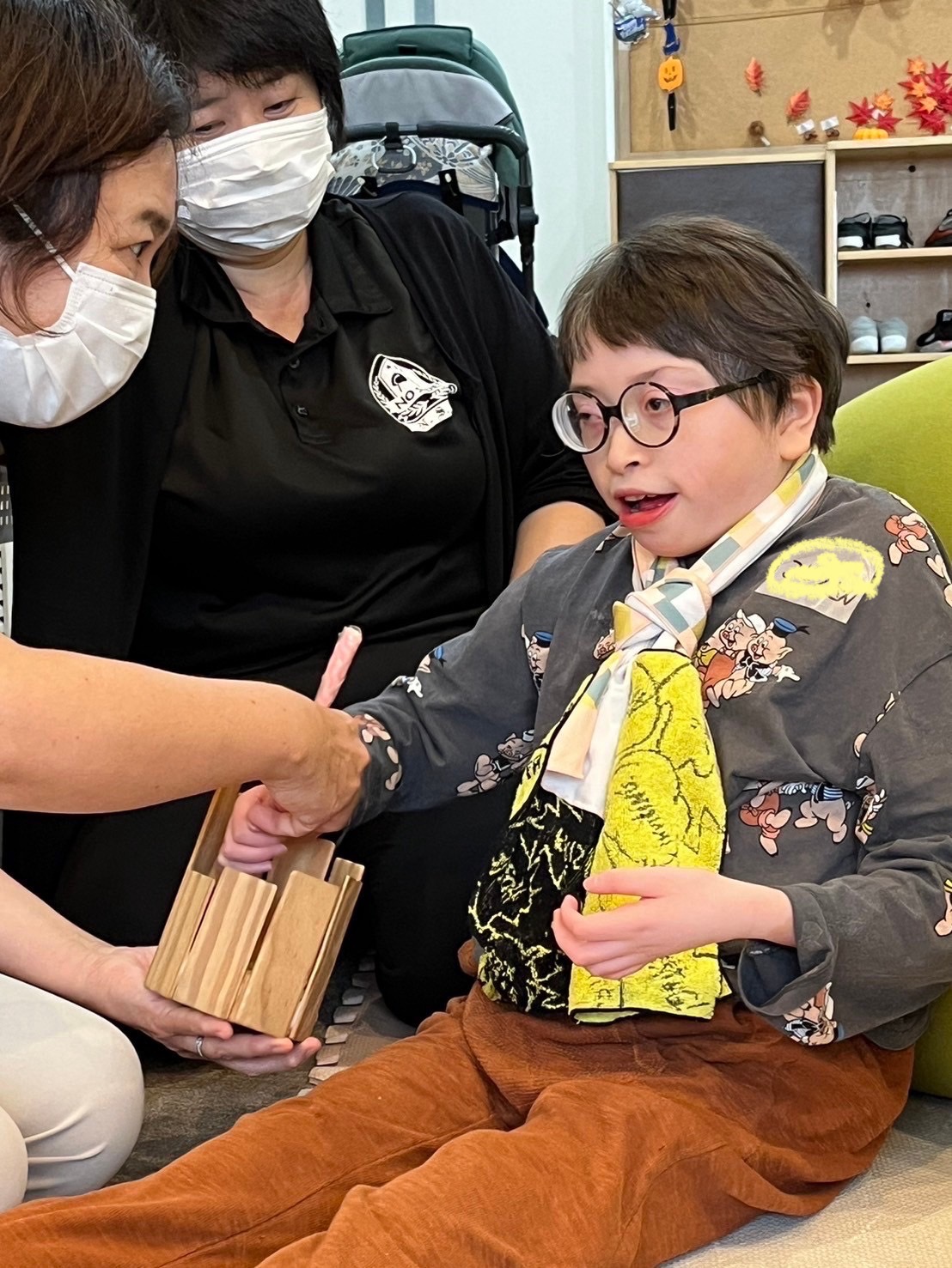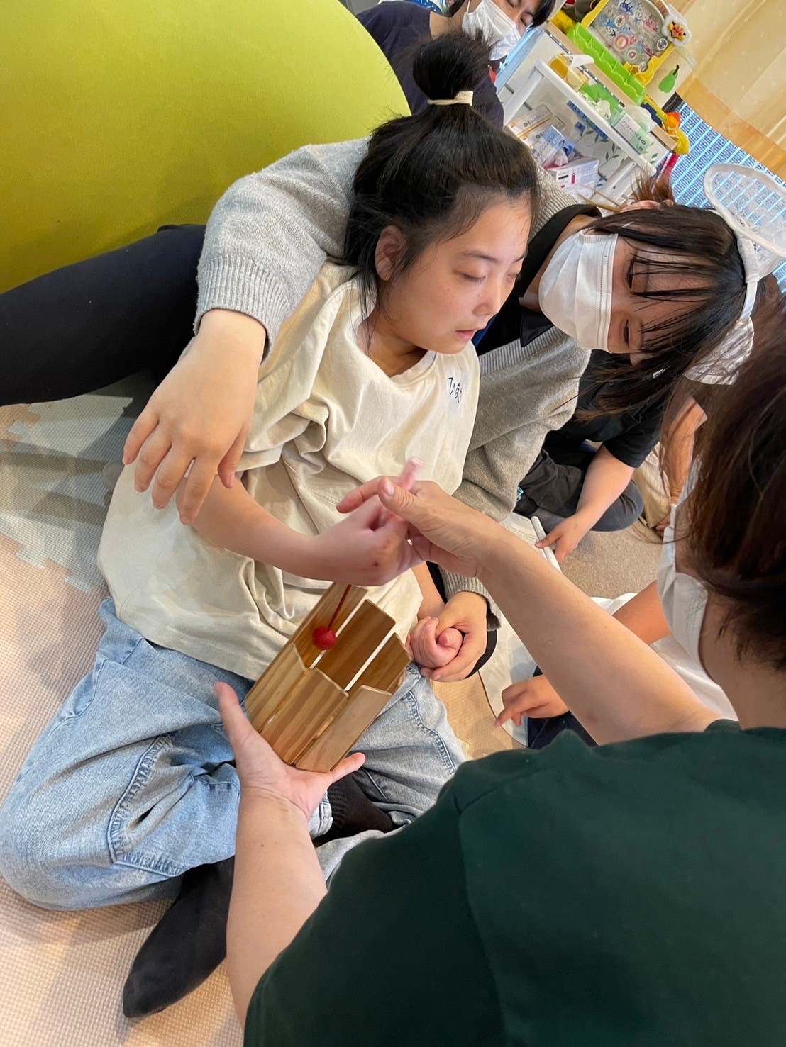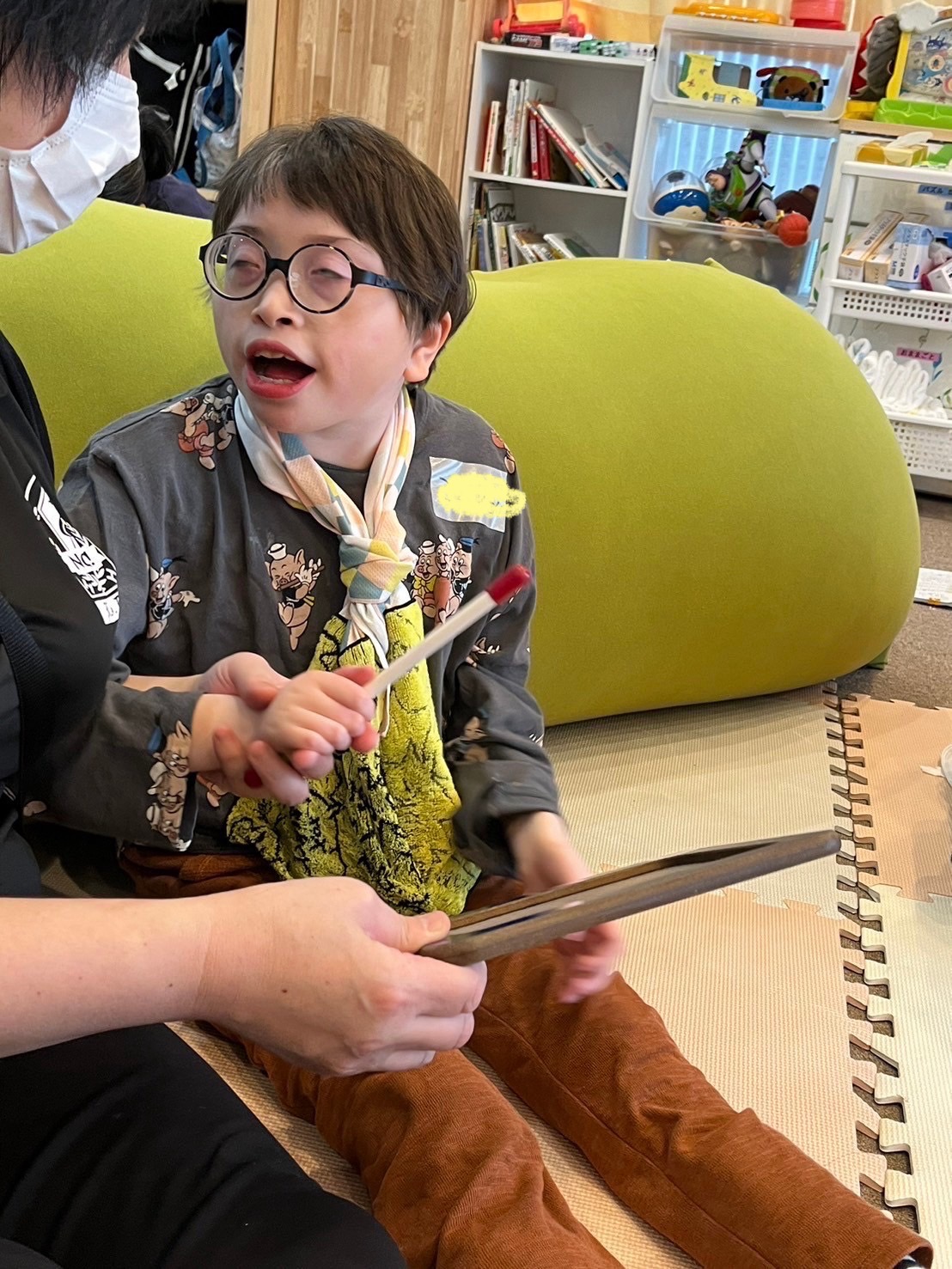 いつもと違う格好にドキドキする子もいれば、気になり取ろうとする子もいたり、ノリノリの子もいたり😊✨