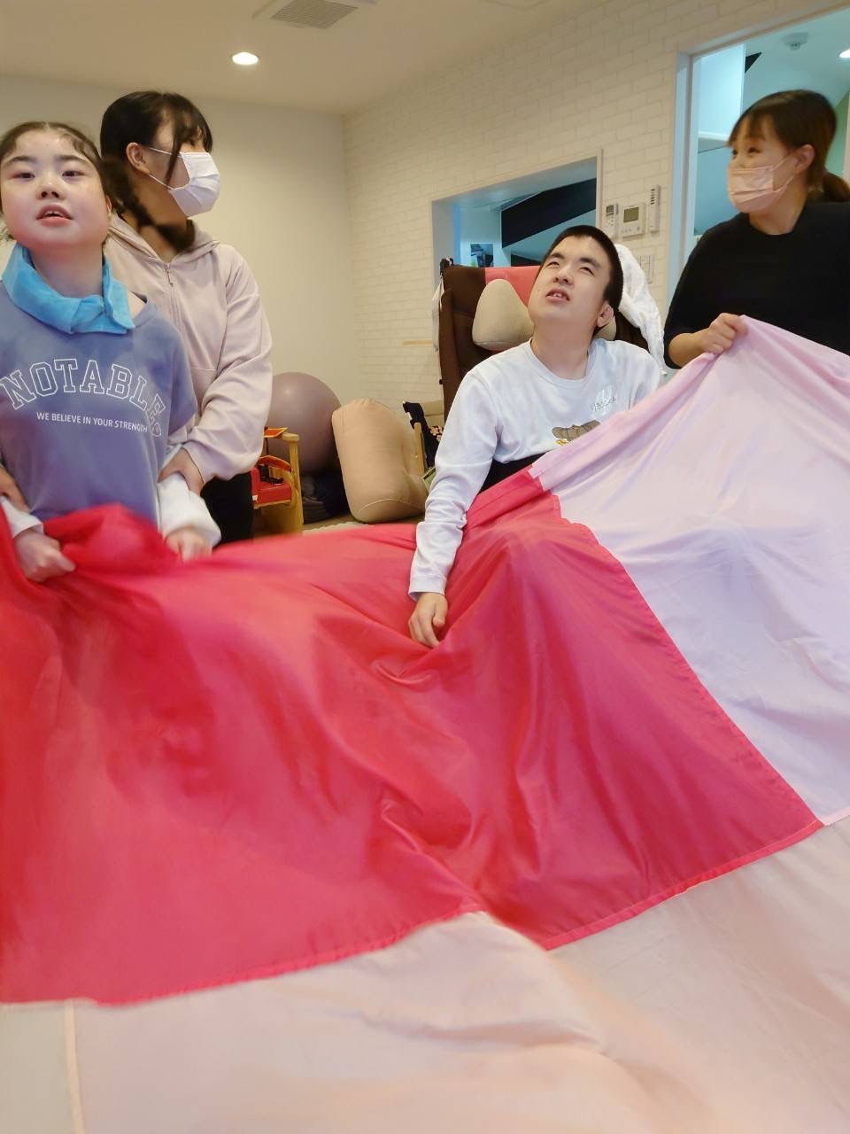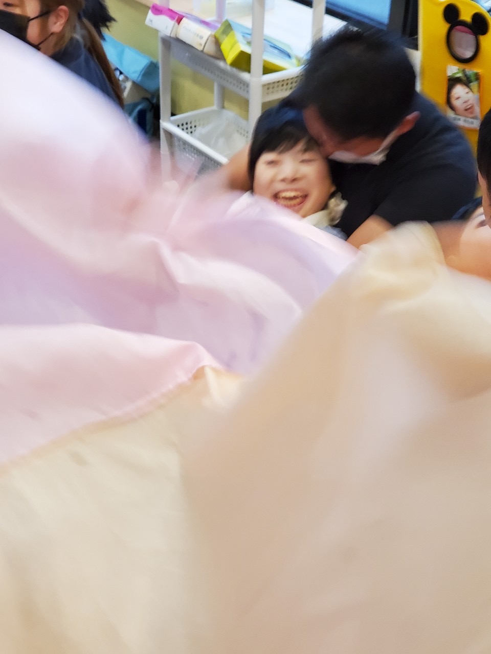 みんなの力でふわ〜っと上にあがったね!気球みたいだね。