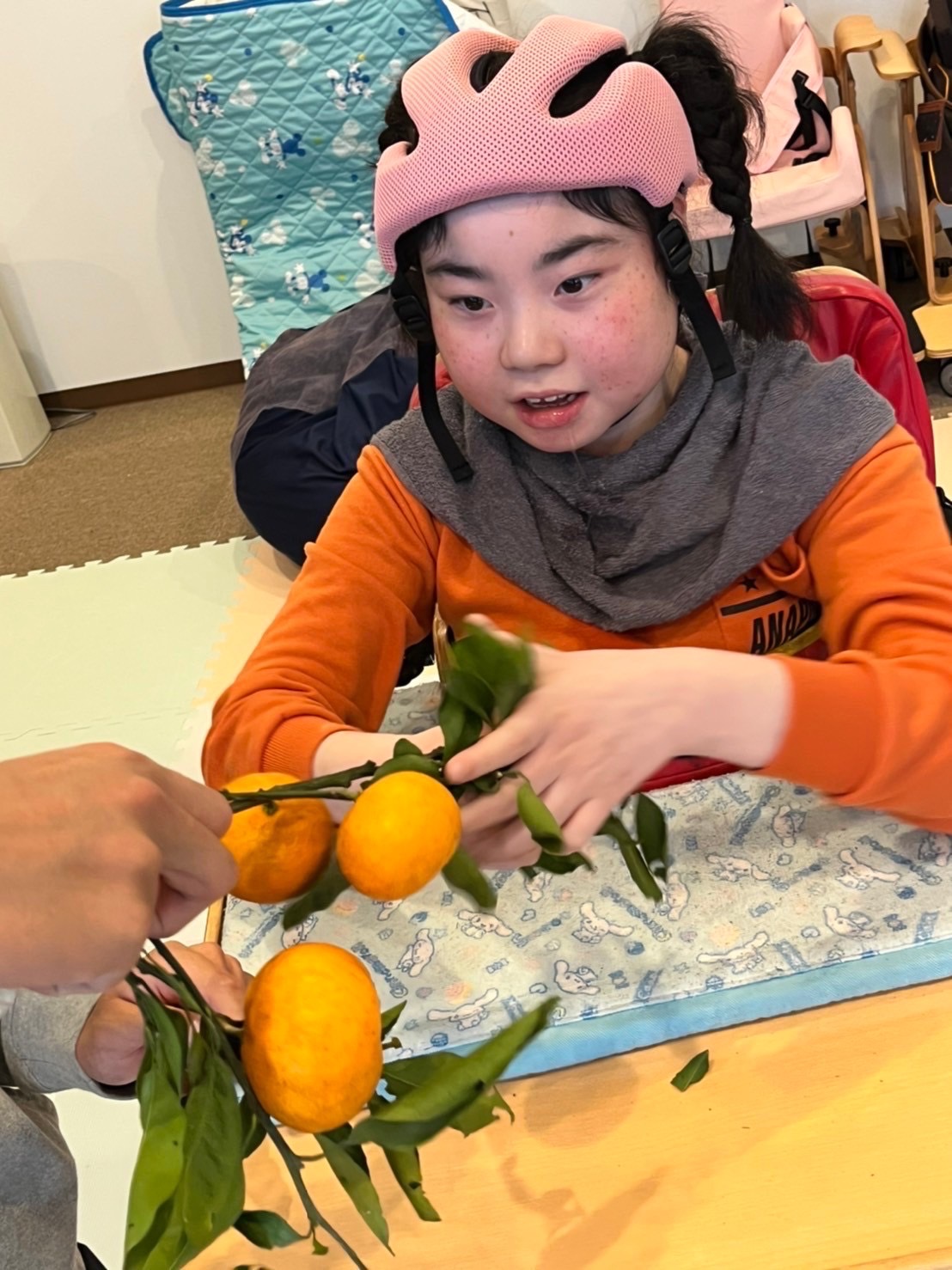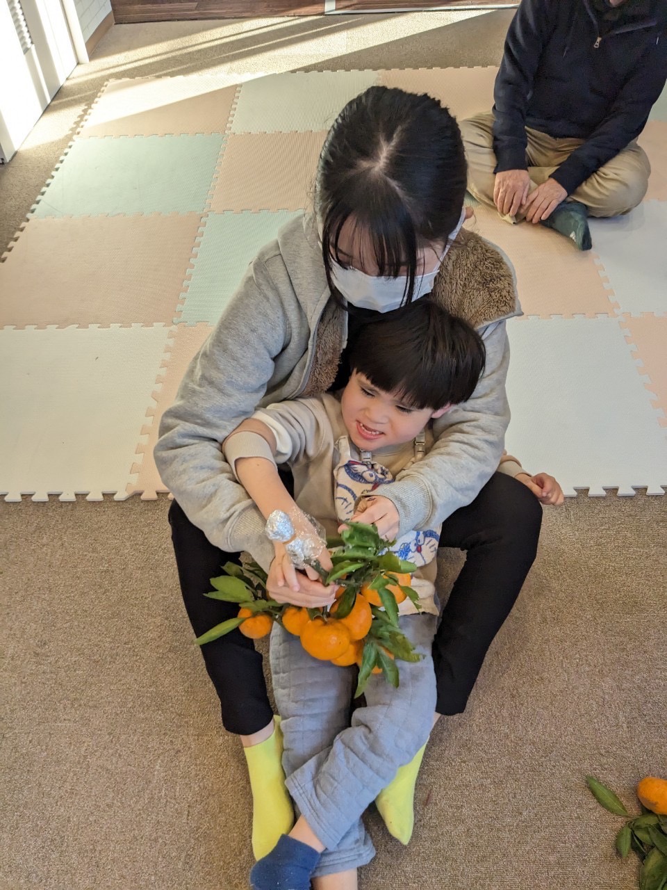 さて、今回のGOKANプログラムは スタッフのご実家で取れた無農薬の枝つきみかんを使った「みかん狩り」です。