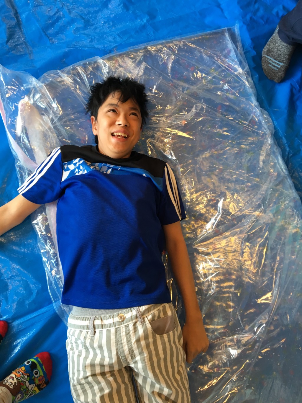 ウォーターベッドの上に寝転ぶ子や