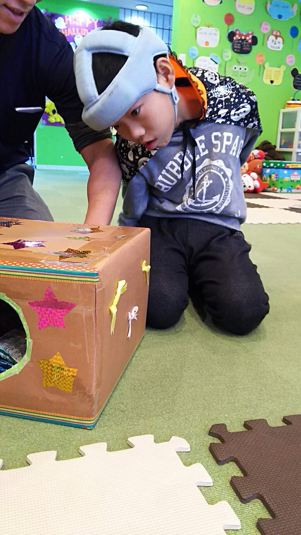 箱の中に手を入れるのを怖がる子( ̄▽ ̄)