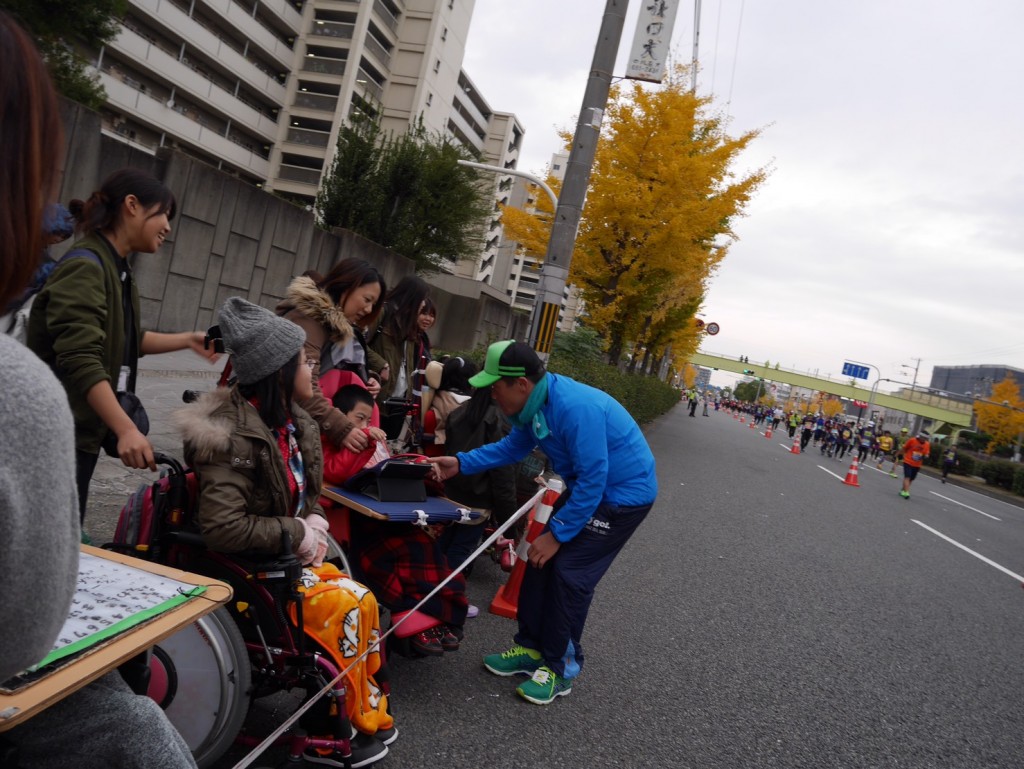 今回は北加賀屋の交差点付近でノーサイド応援隊は声援を送りました!