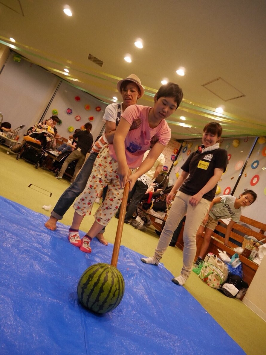 BBQを食べたり、お楽しみゲームやすいか割り、