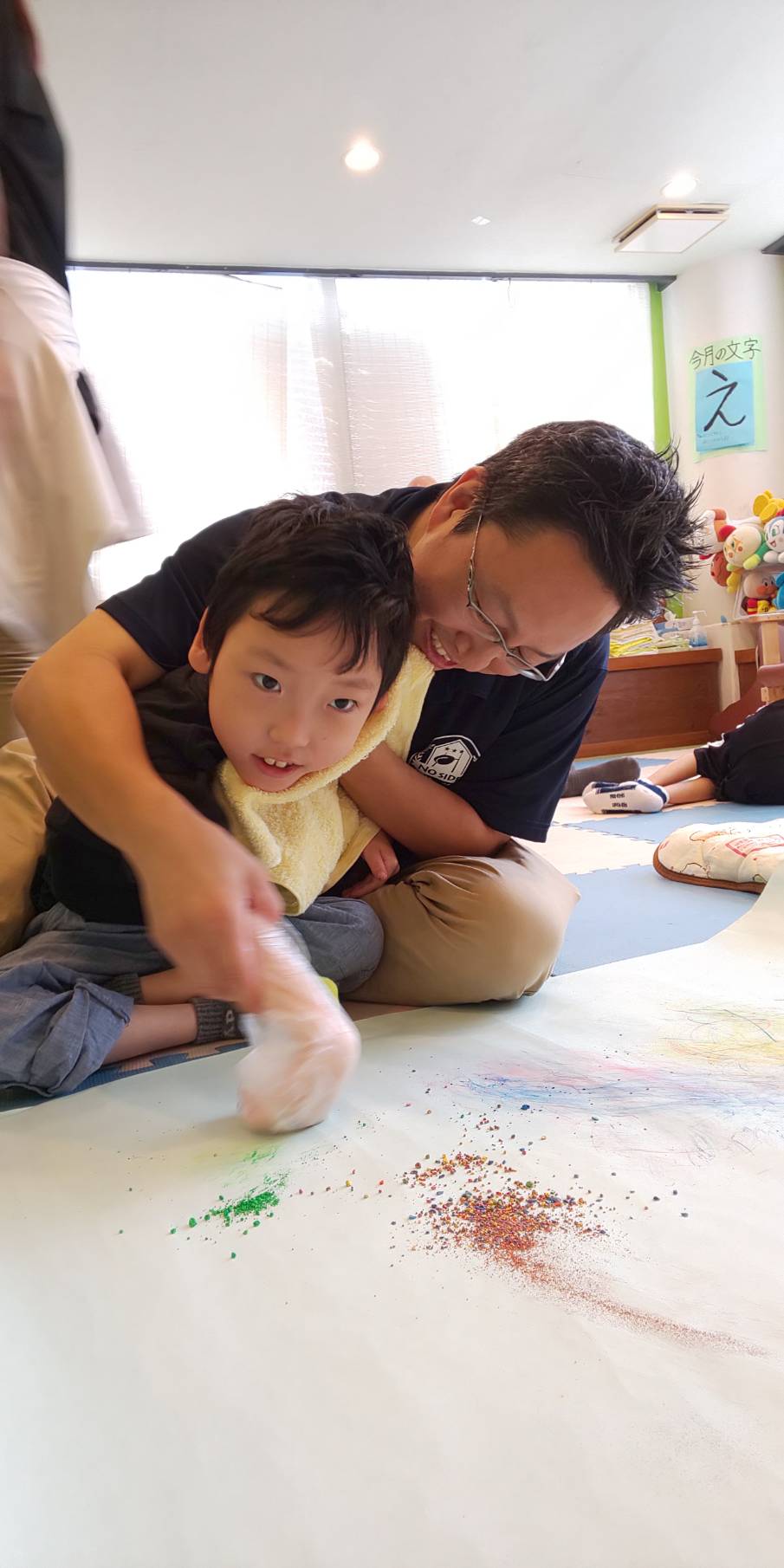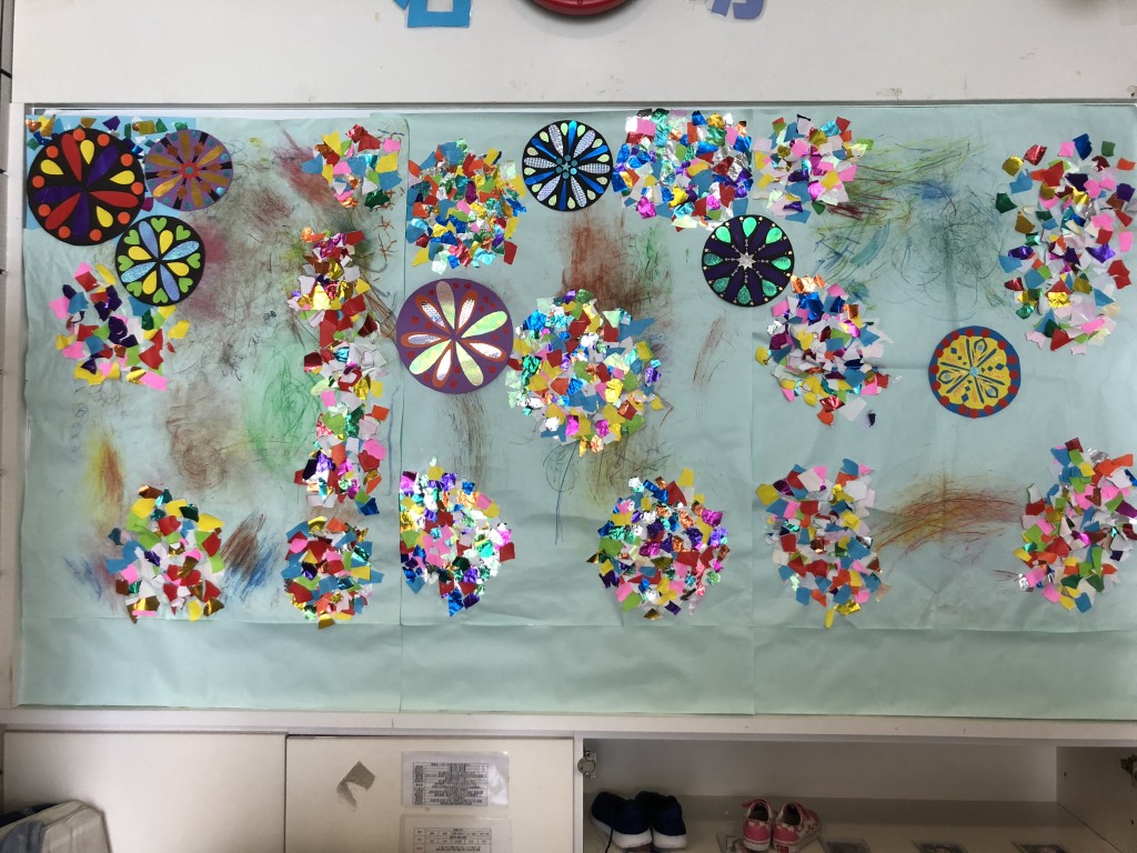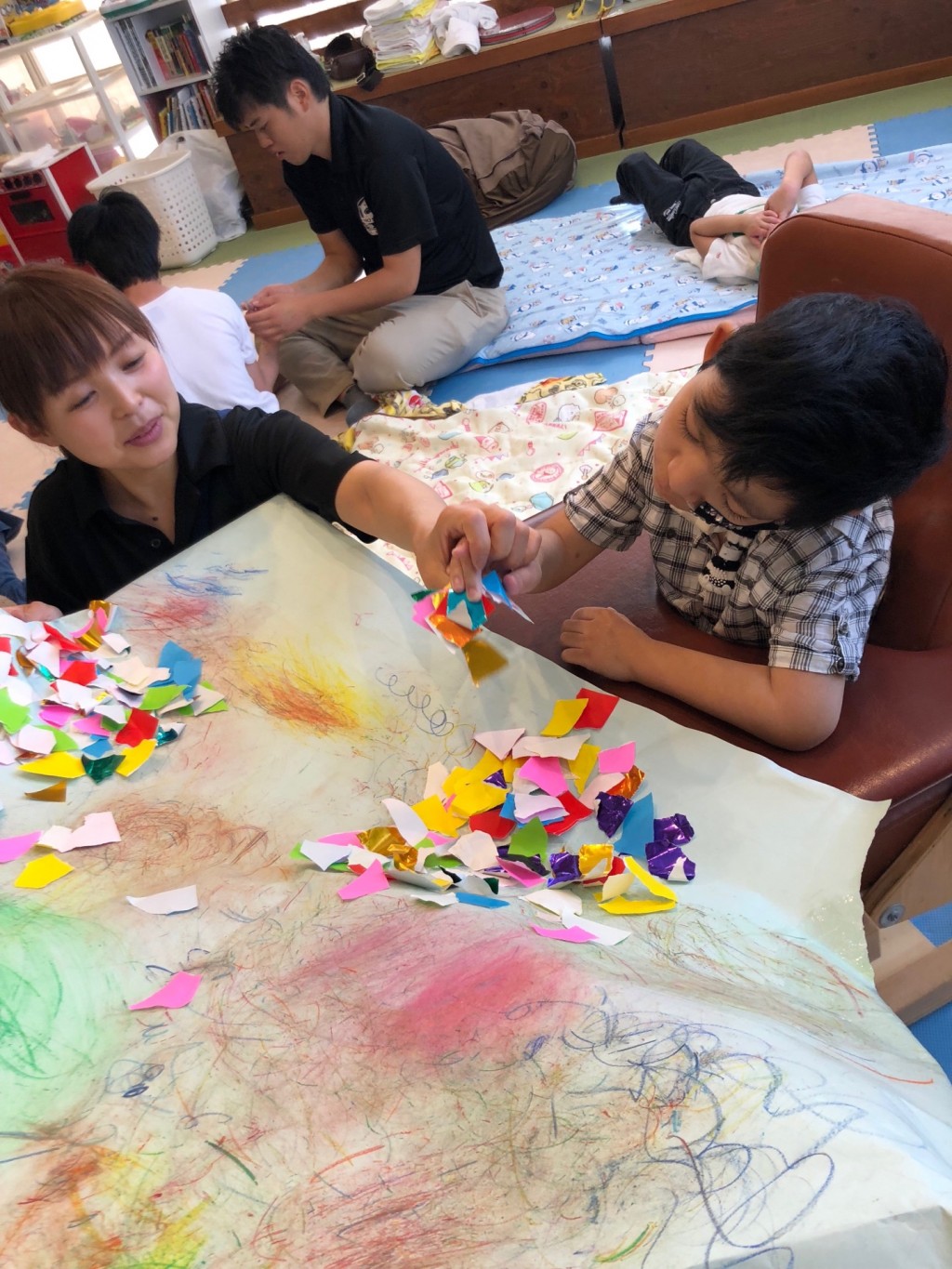 模造紙に散りばめて子どもたちの手でぬーりぬり♪