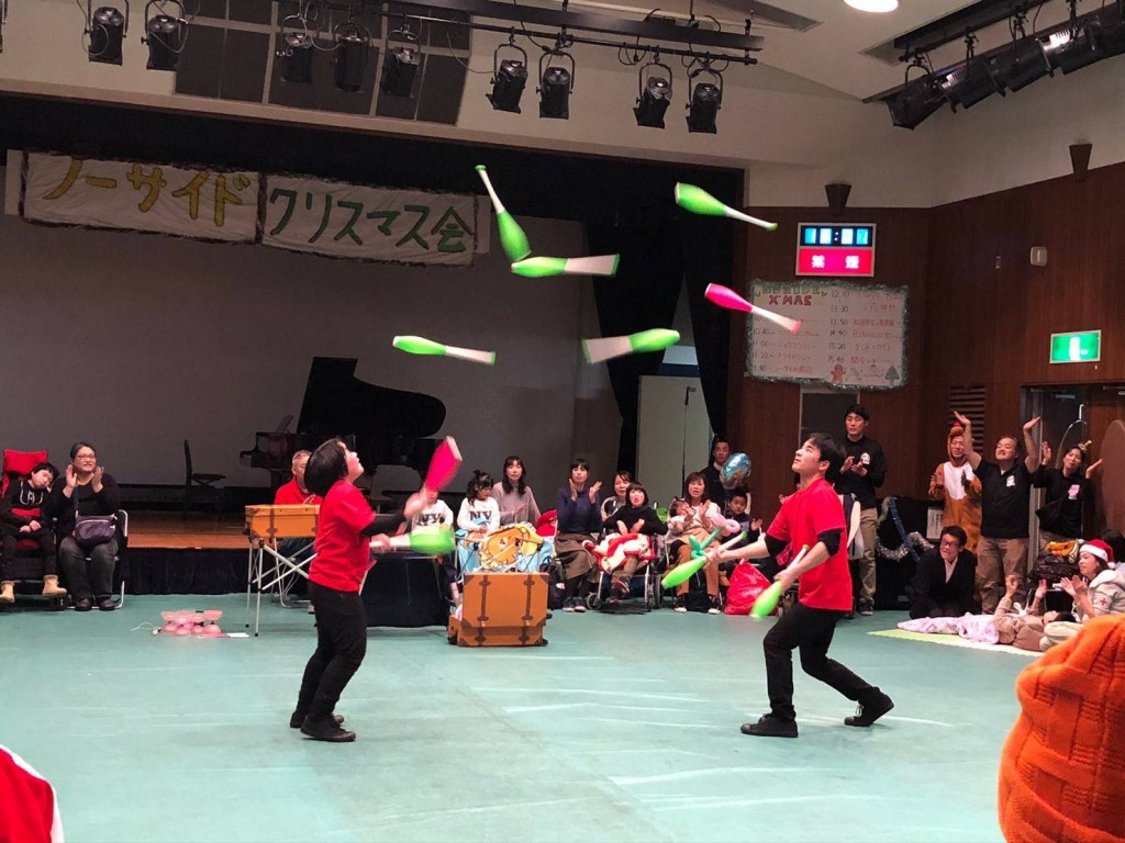 クリスマス会では初めてのケント&カケトの2人のジャグリングショーは盛り上がりました!!