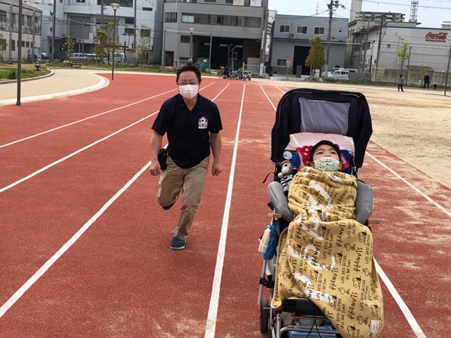 ブランコや滑り台を楽しんでもらい、最後に100m競争では大差をつけてゴール!!