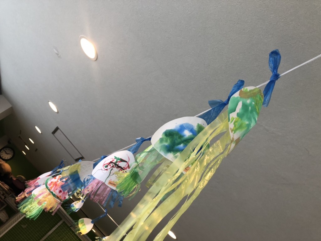 クラゲの型紙に好きな色を塗ったり