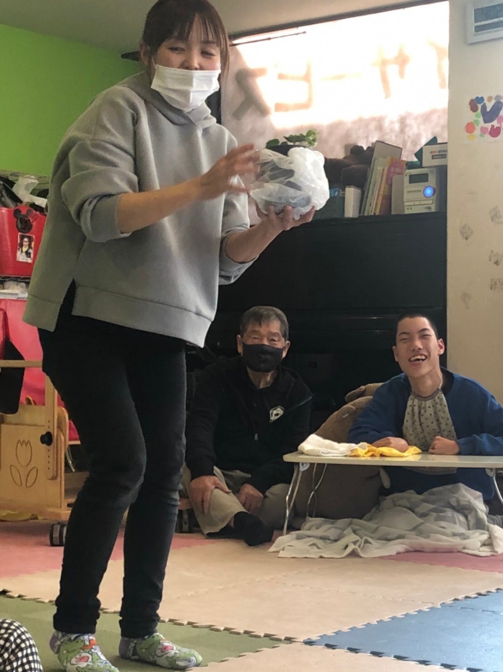喜んでいる子ども達。