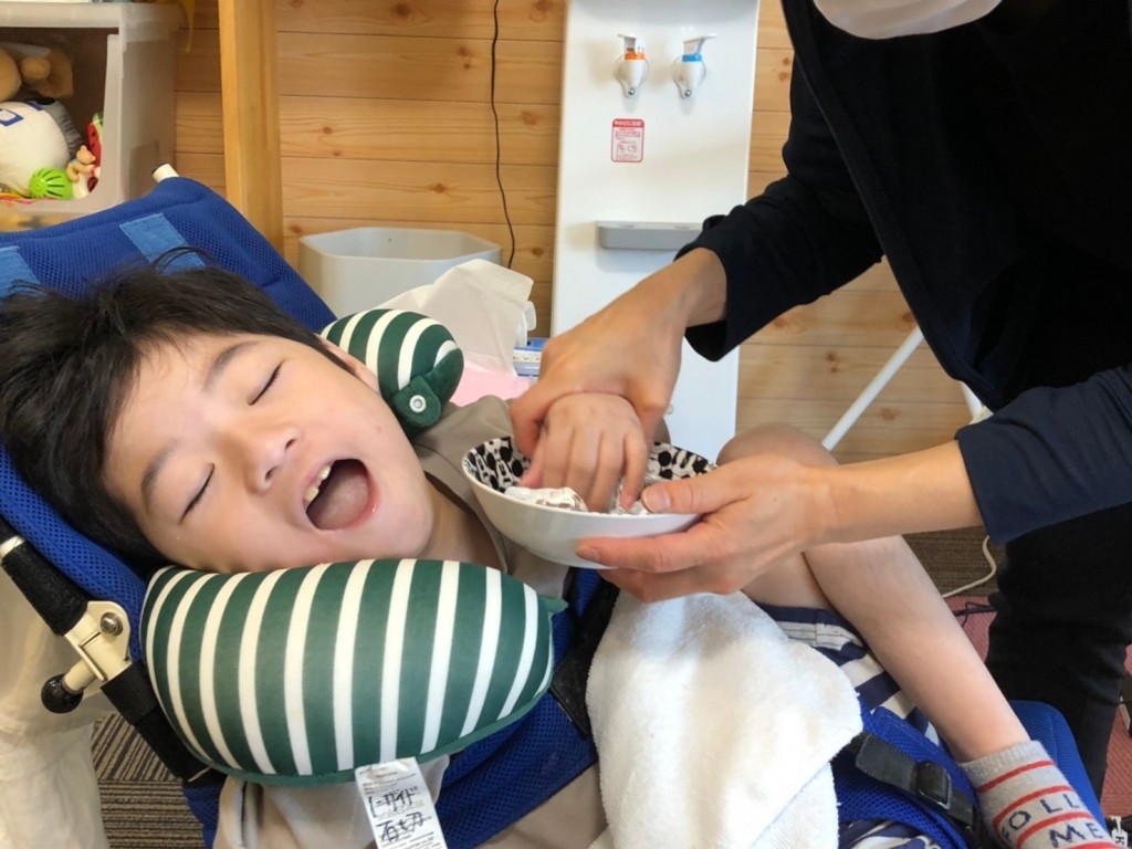 冷たくてびっくりする子や、気持ちよくて思わず笑ってしまう子^ – ^