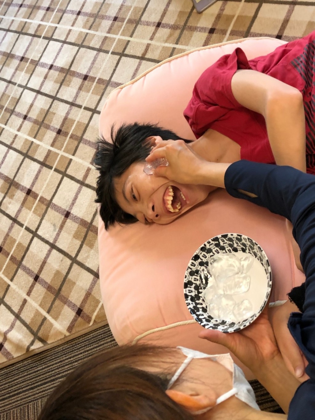 まずは氷を触ってみたり、顔に付けてみました!