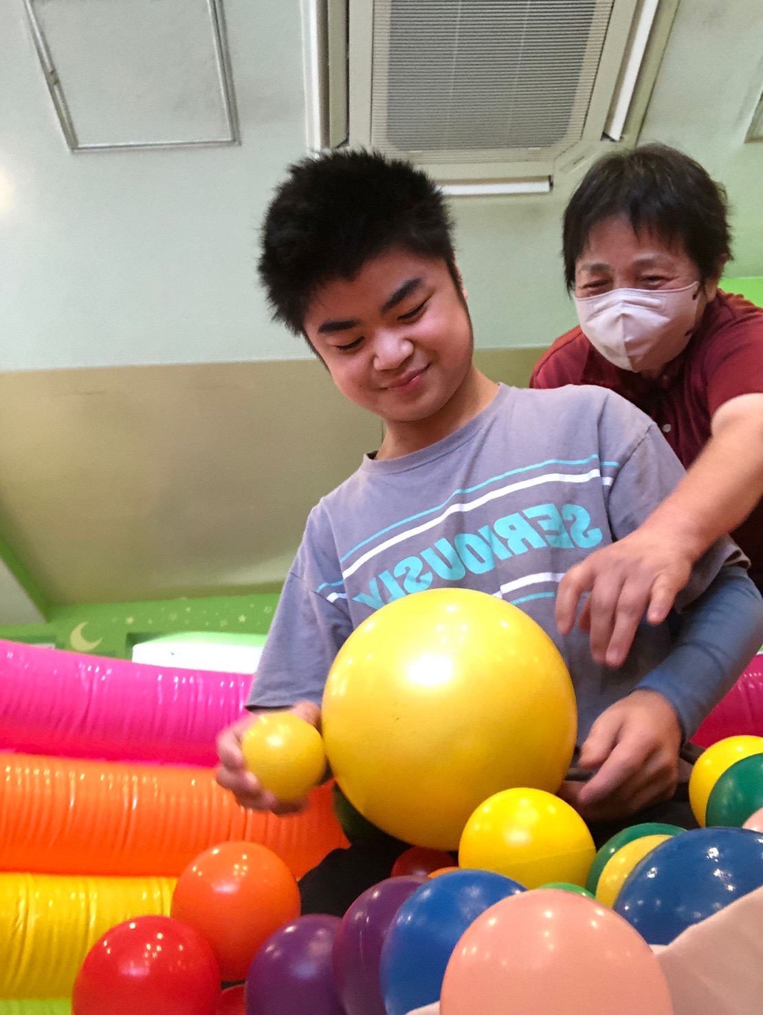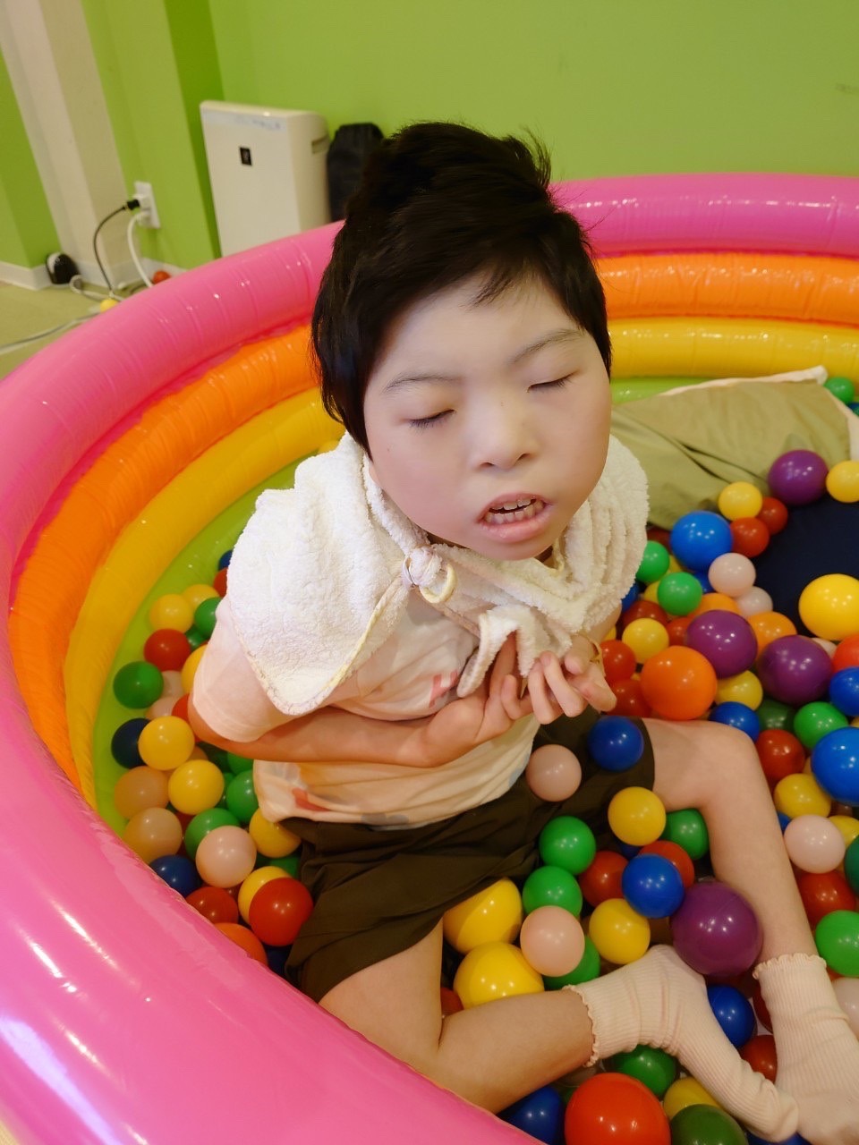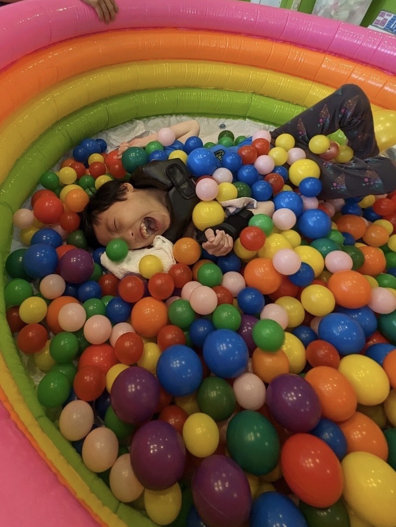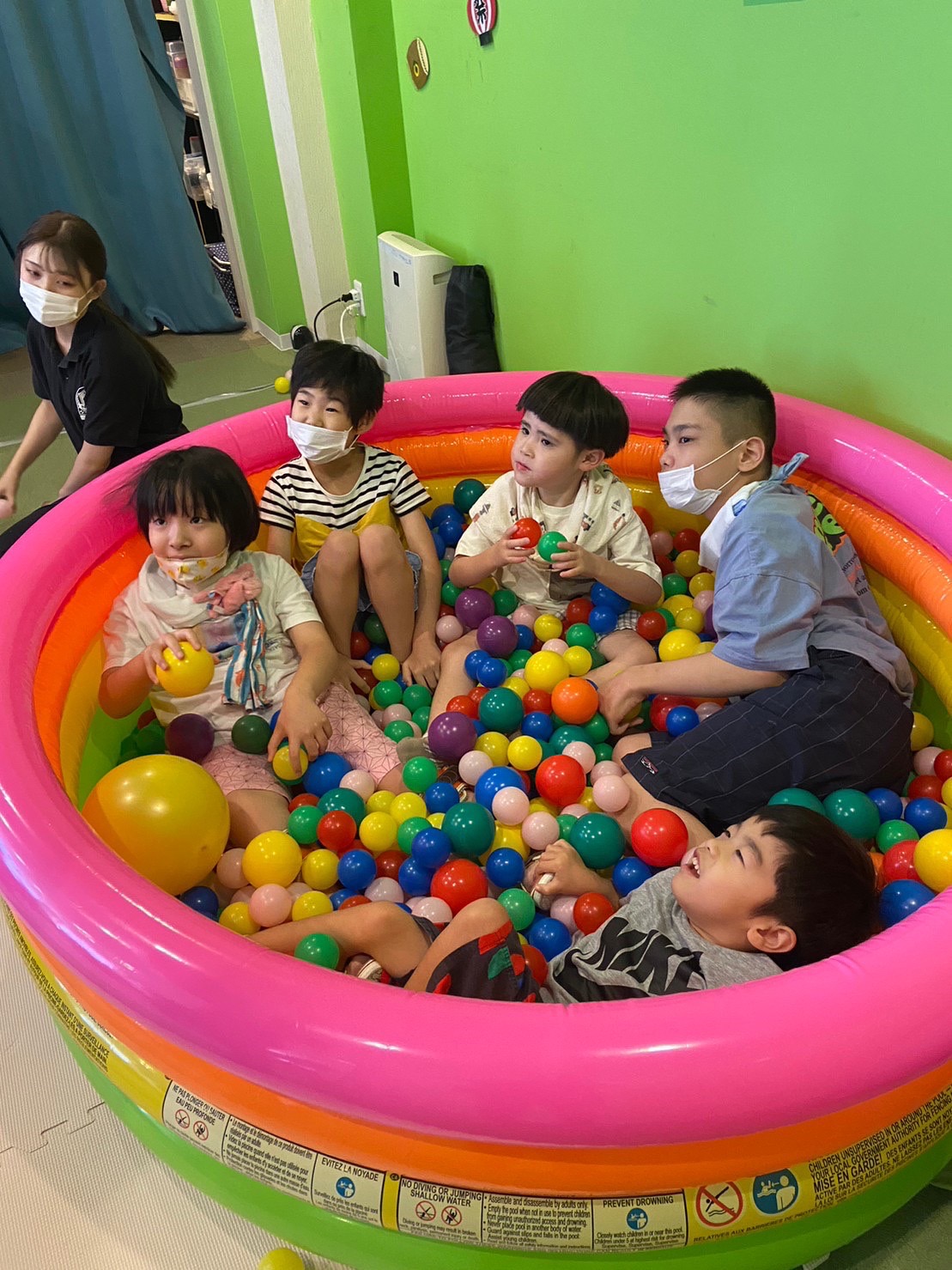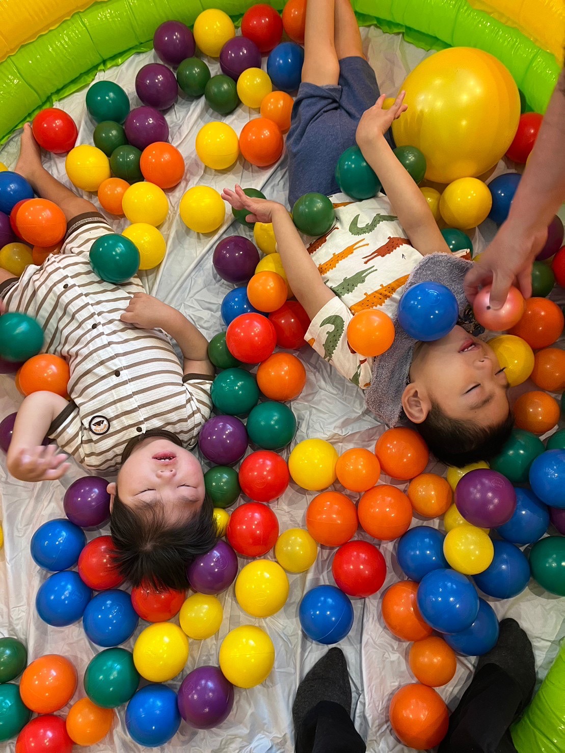 ということでカラフルなボールプールが出てきました、みんなで順番に入っていきましょう☺️