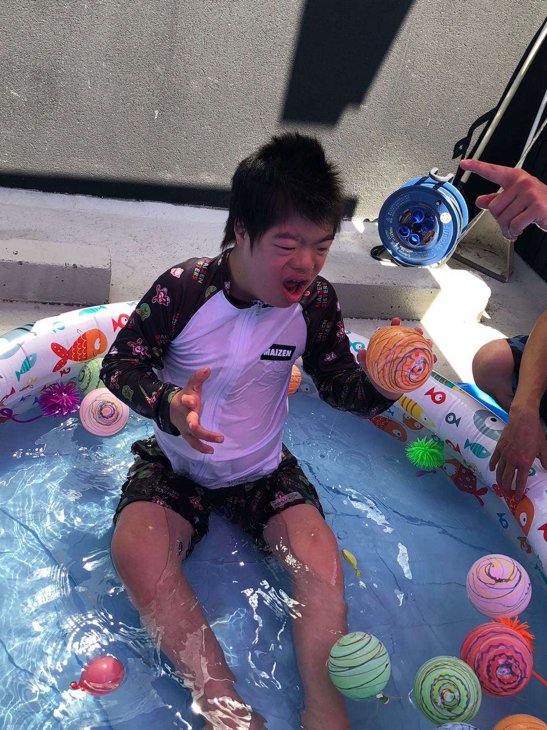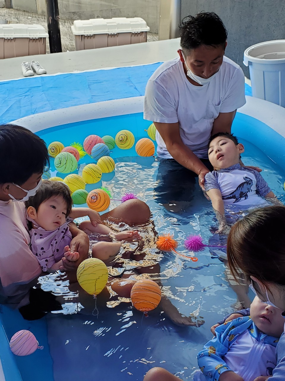 プールの中には夏祭りで使ったヨーヨーも入れて、一味違う水遊びをしました。 みんな夏にも負けない笑顔と笑い声でプール遊びを満喫しました。