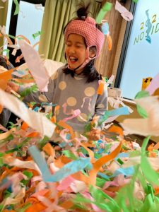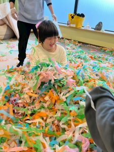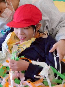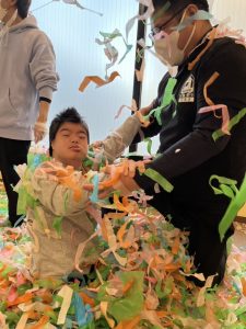 今日支援学校が振り替え休日だったので、朝からみんなで花紙をちぎり、90リットルの袋いっぱいに………!