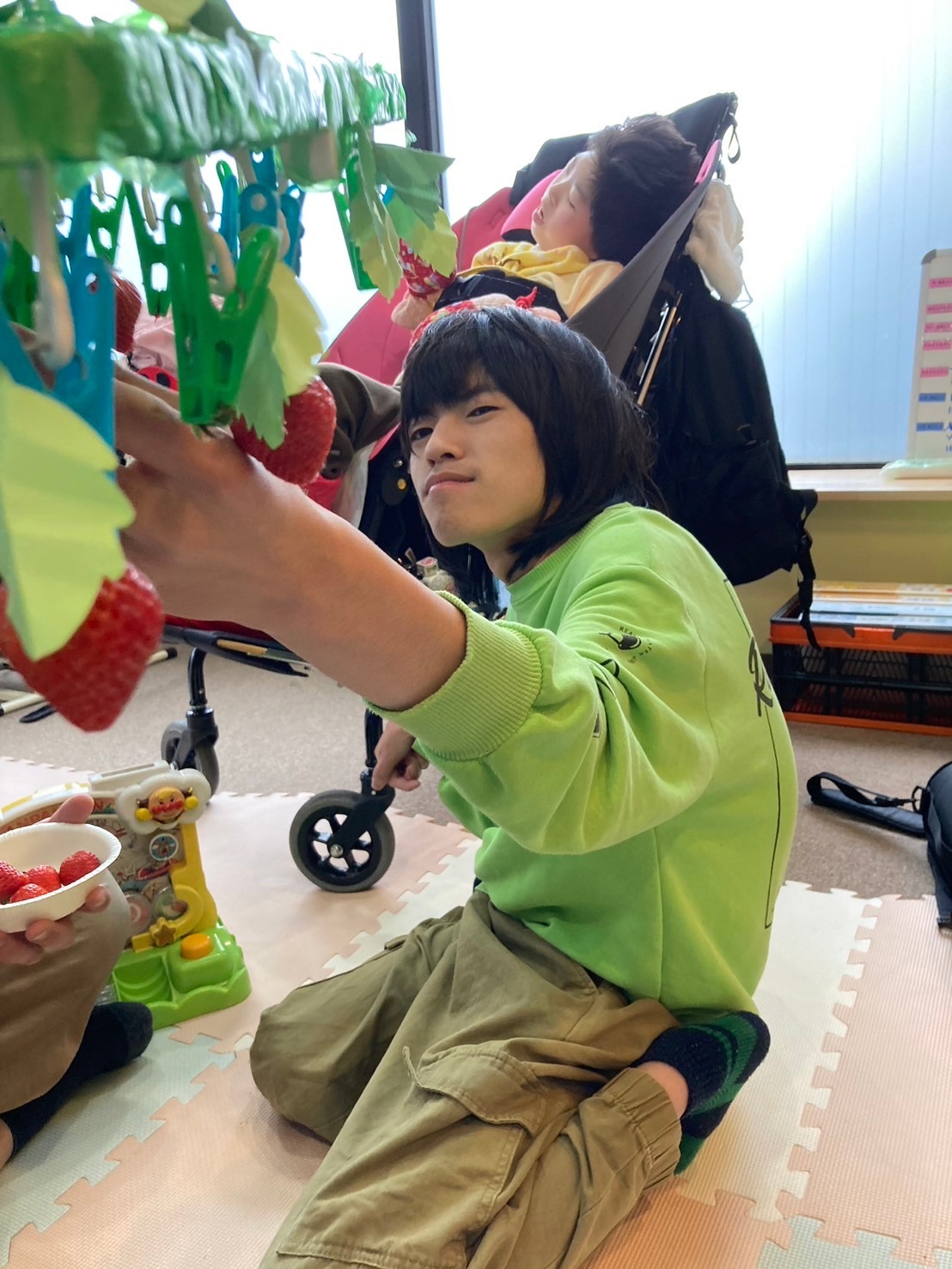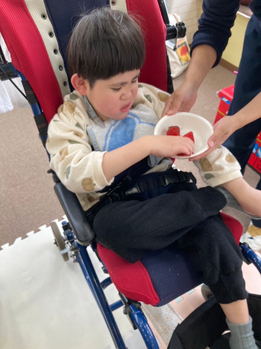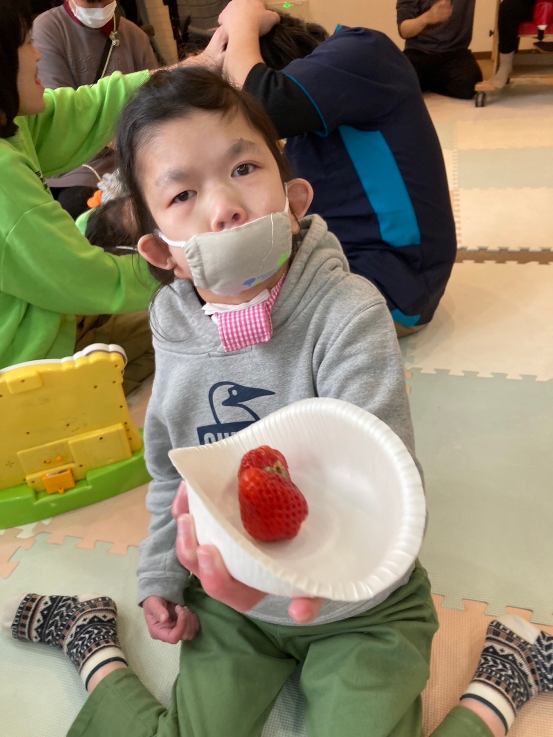 取って食べようとする子やいちごを笑顔で眺める子も🤭