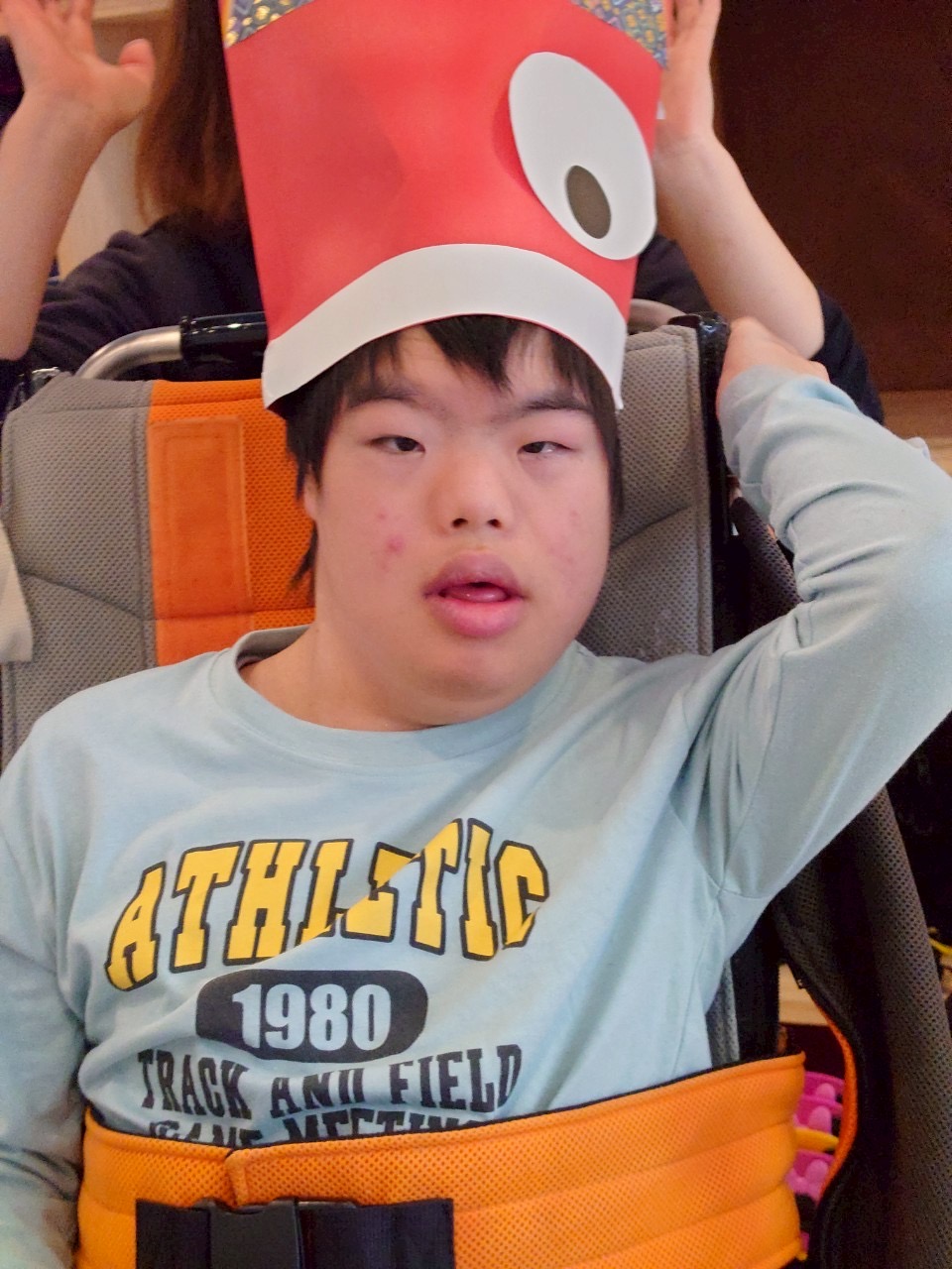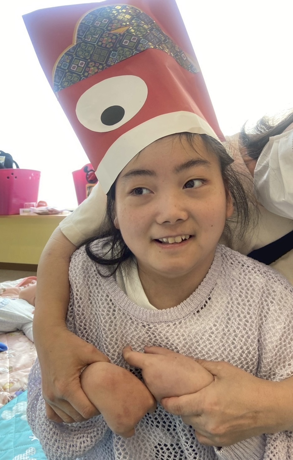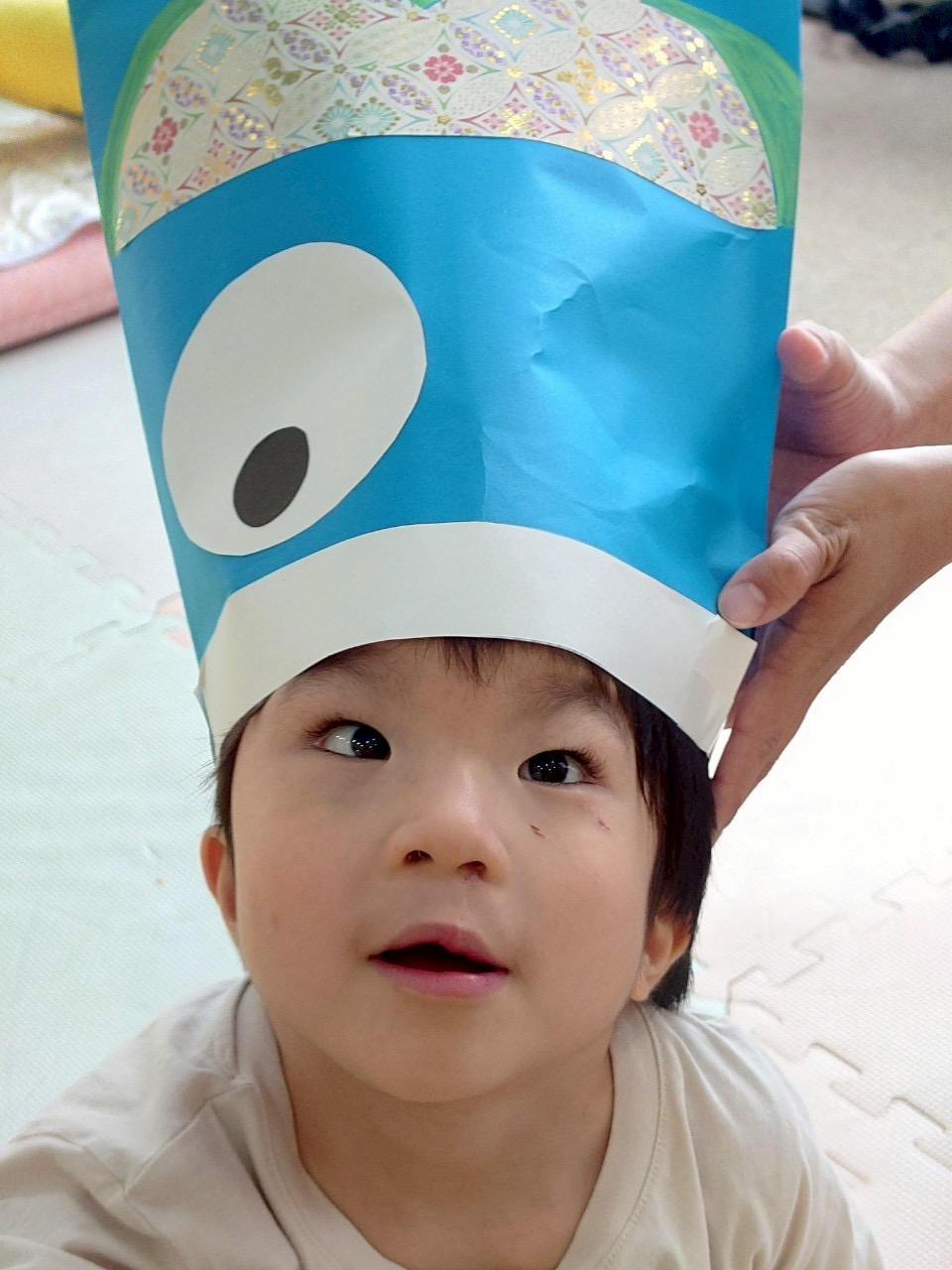 今回は、5月5日のこどもの日が近づいてきたので、デイで鯉のぼりの帽子を作り、みんなが被っている写真を撮りました!📸