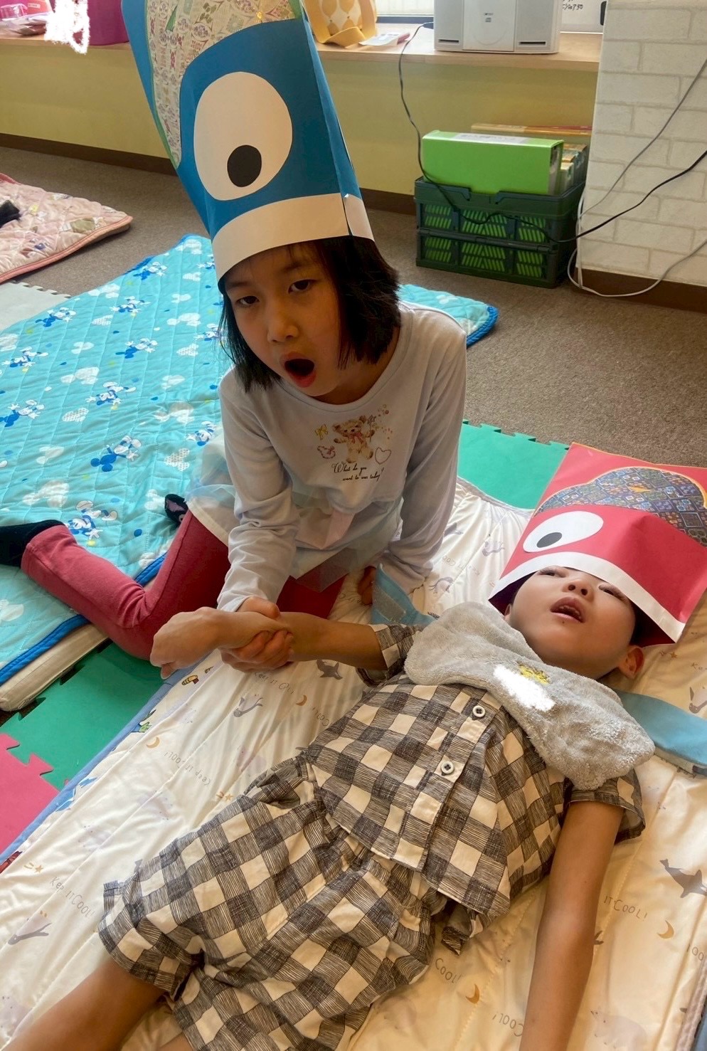 ノリノリで被ってくれる子や、不思議そうな反応をしている子など、様々な様子でした🎏
