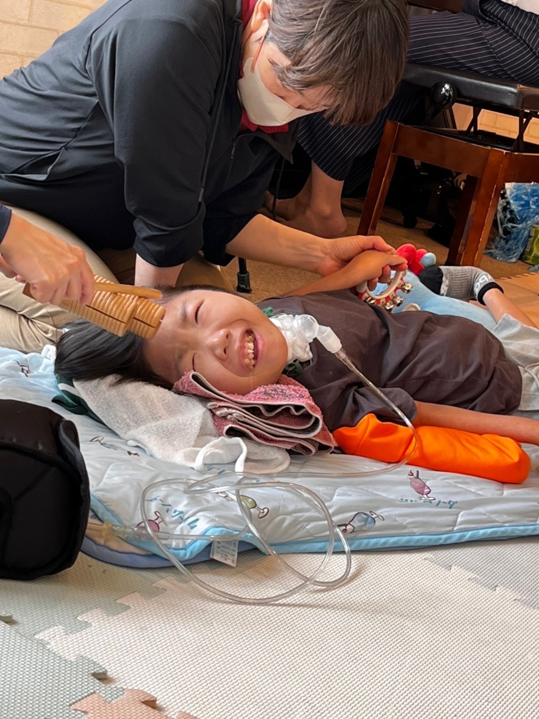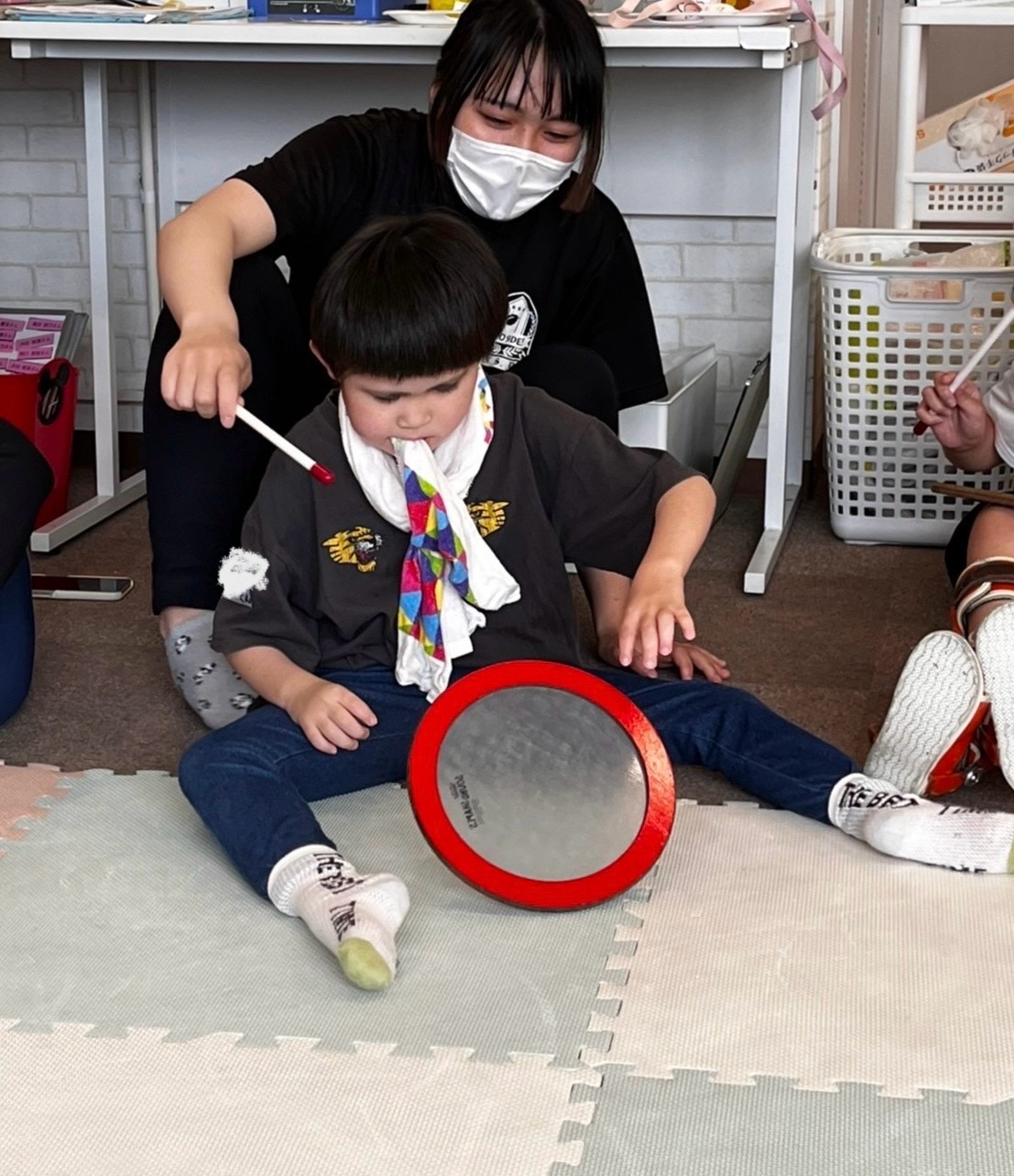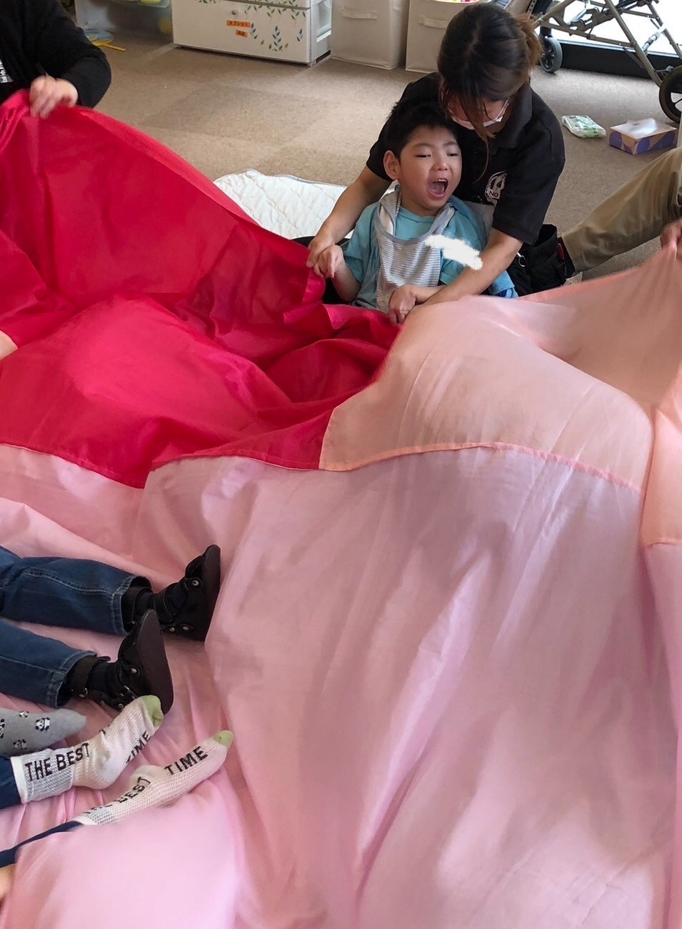 今月の音楽療法も元気いっぱい賑やかに楽しみました!お馴染みのオーシャンドラムやレインスティック、バルーンに包まれてニコニコな笑顔が多くみられました😄