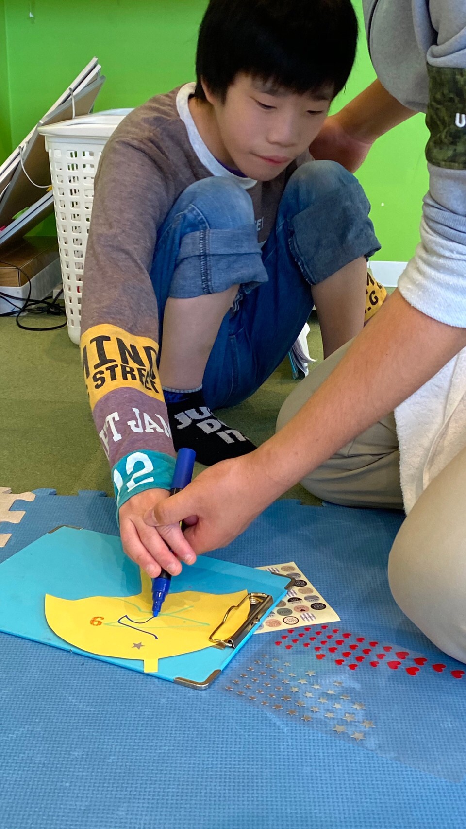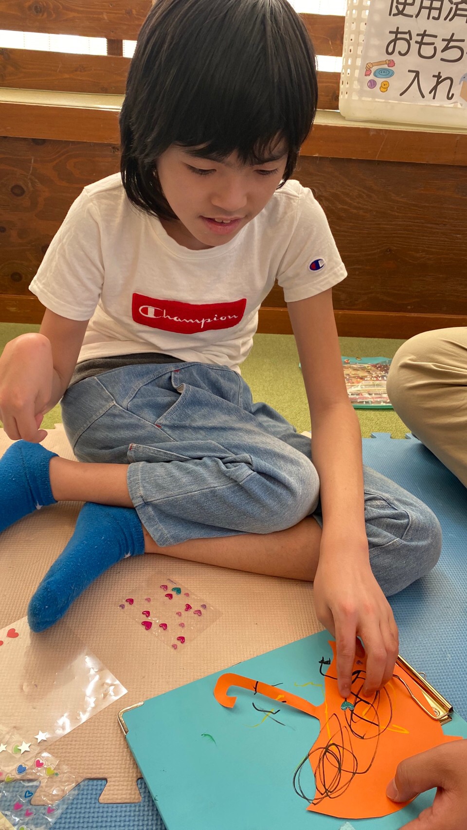 絵を描いたり、シールを貼ったりして