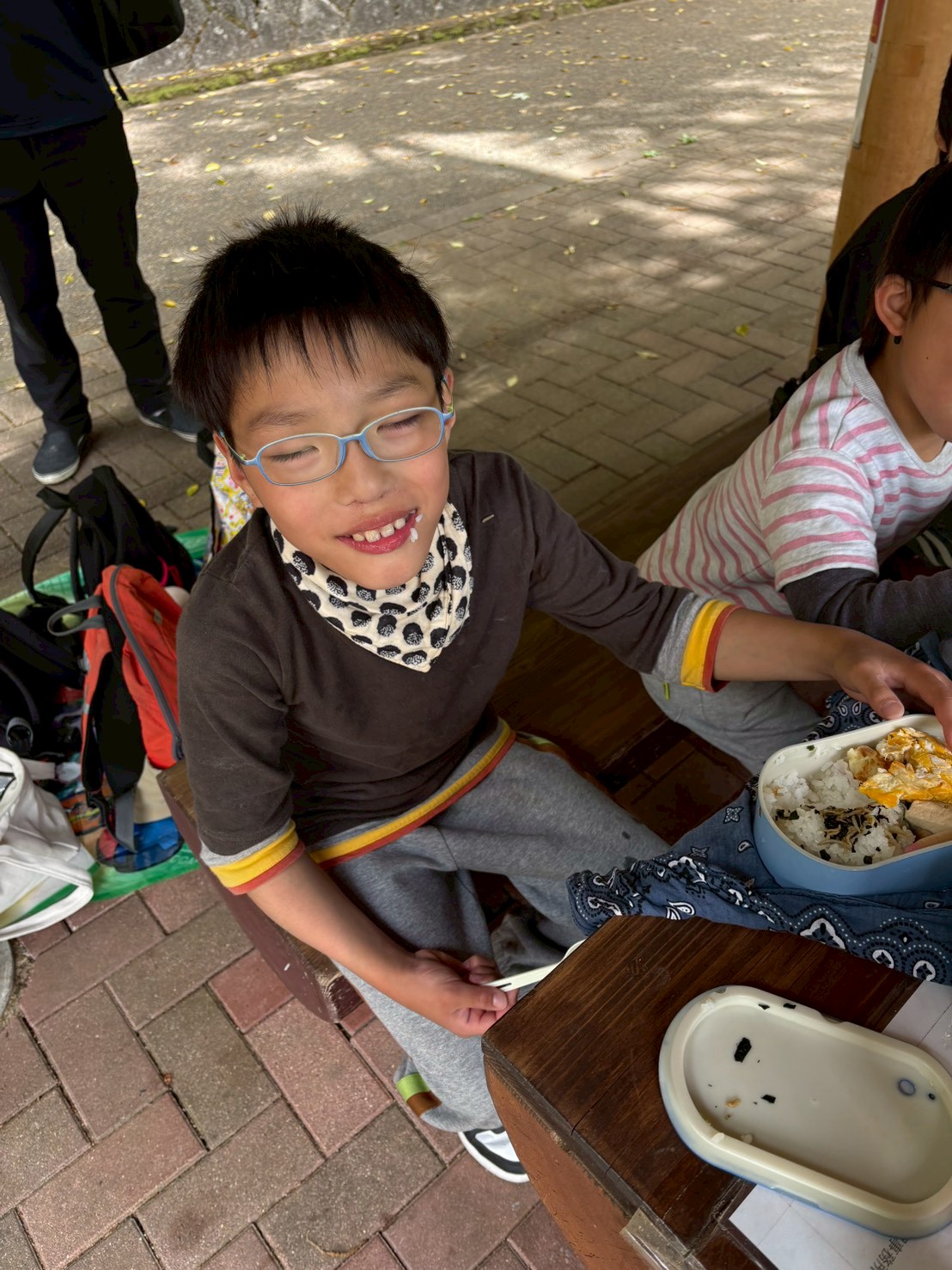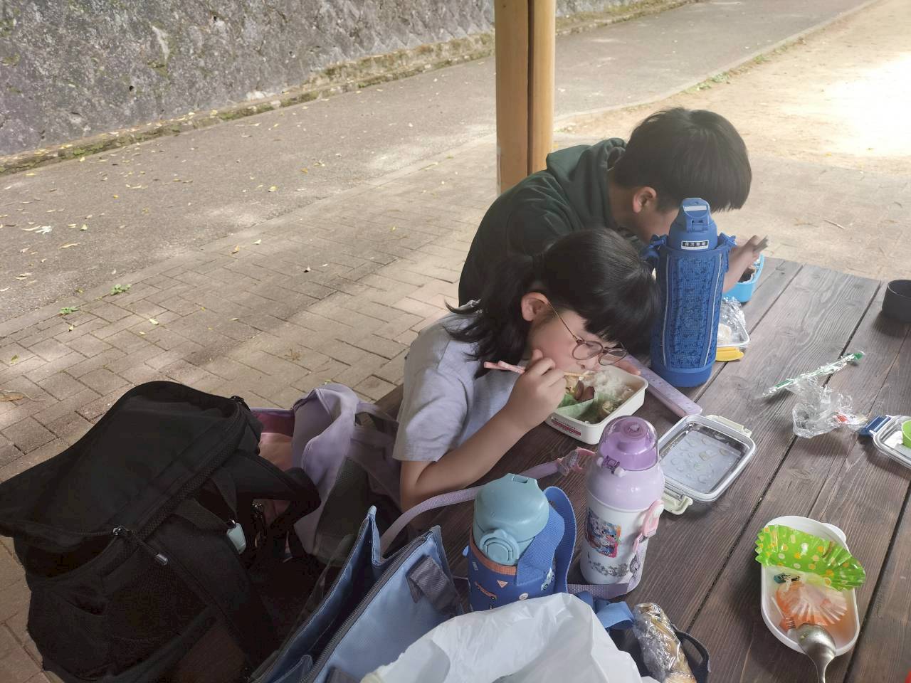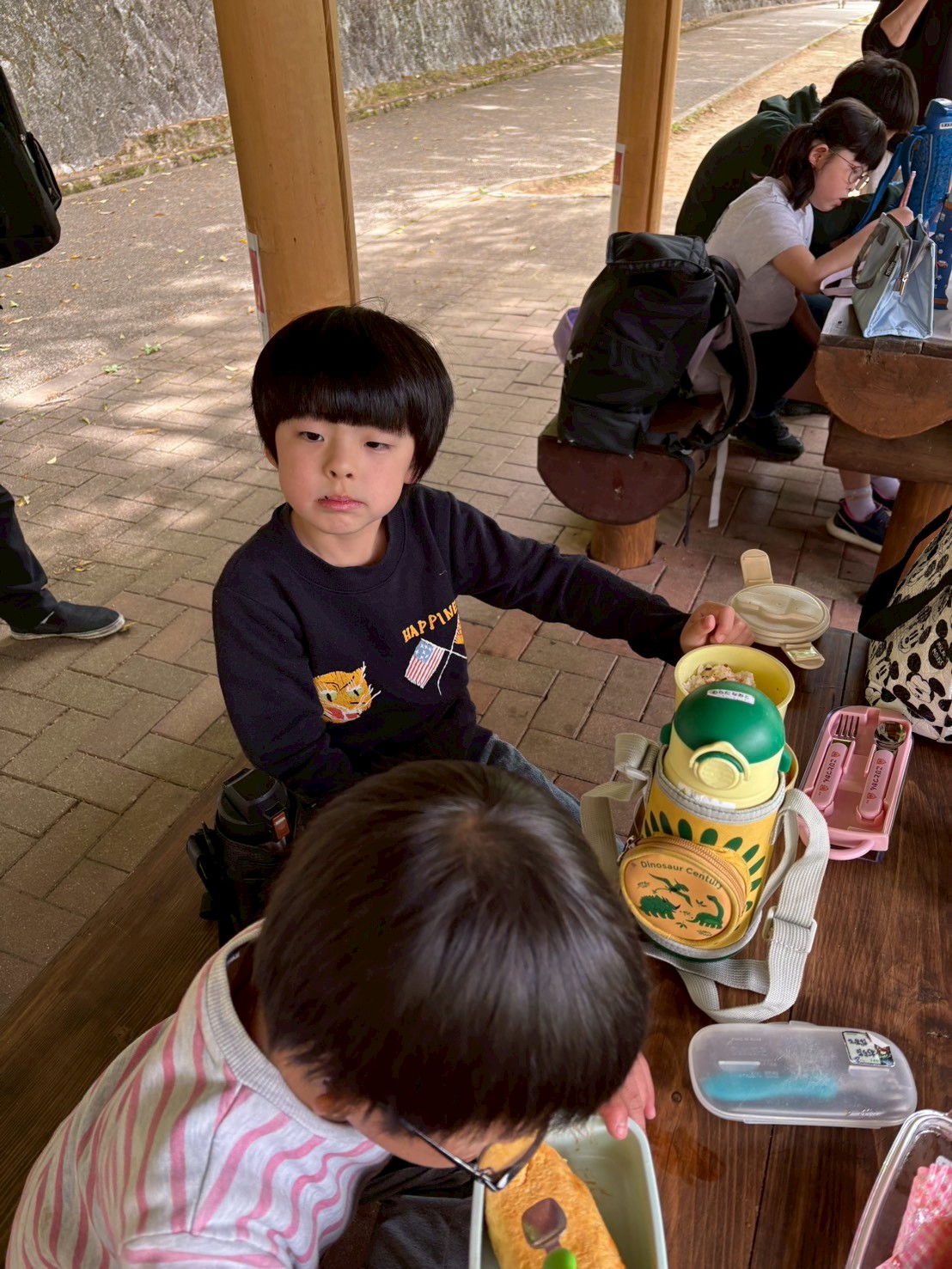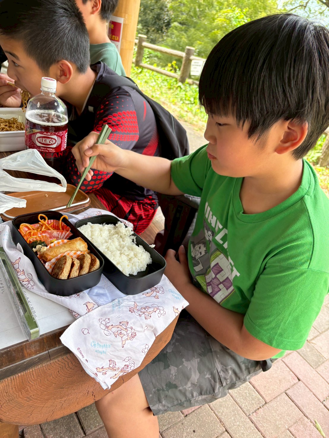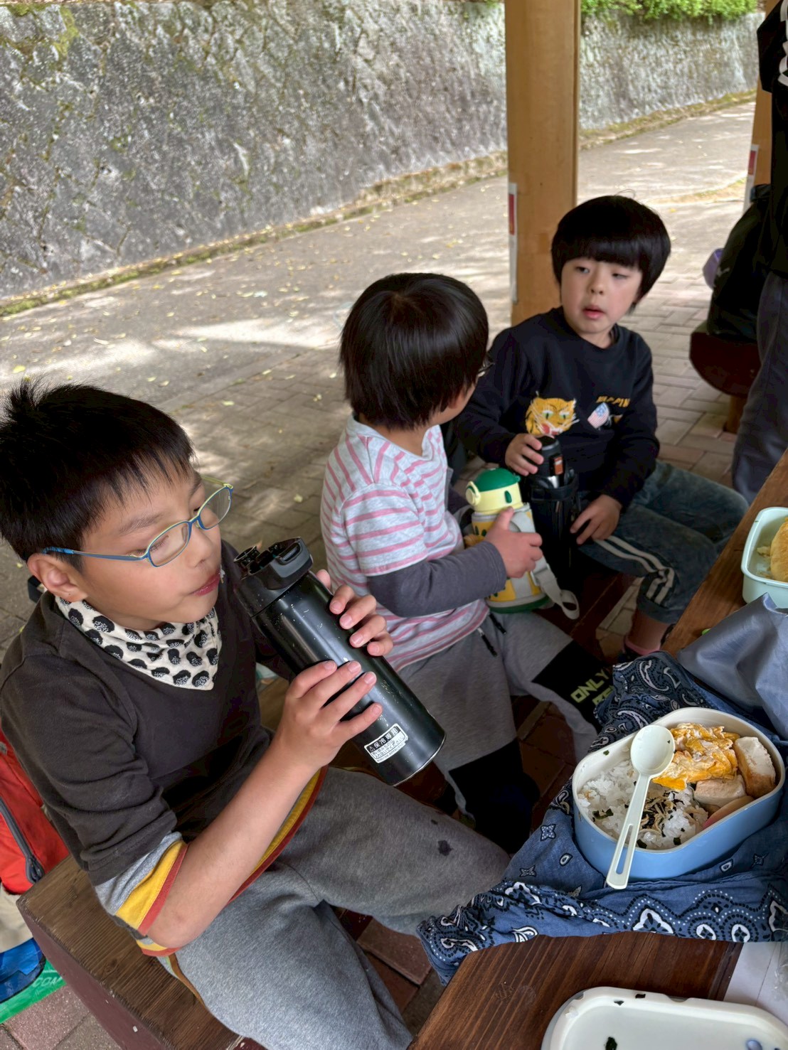 公園内にあるベンチにそれぞれお弁当を広げ