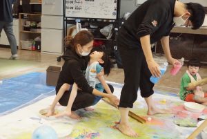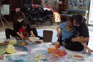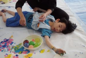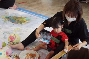 ノーサイドstudioで開催された”ぐちゃぐちゃ遊び”は、講師の先生をお招きし絵の具や色水を使った感覚遊びをしました(*^-^*)