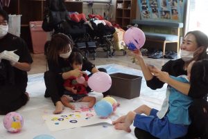 ぷよぷよの感触とひんやりとした冷たい感触に子どもたちは興味津々です(^^)/