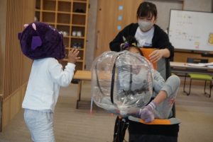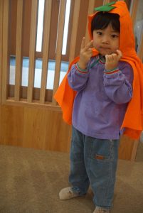 お友達の仮装を見て楽しそうにお喋りをしていました(^^♪