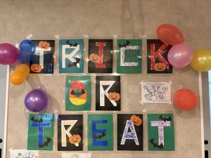 みんなで準備を重ねてきたハロウィン装飾を飾っていきます(^_-)-☆