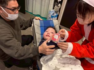 1人ずつサンタさんから手渡しでプレゼントをもらいます(*’▽’)