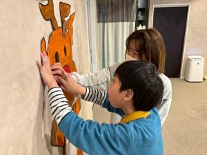 サンタチームは”サンタ”、トナカイチームは”トナカイ”のパズルを1人1つずつ運んでいき、壁に貼って完成を目指します🌟