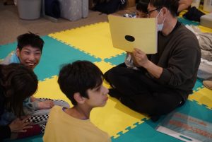 子どもたちがそれぞれ個別で読む”絵本読み”とは違って、紙芝居は”みんなで集まって見る”という点があります👀